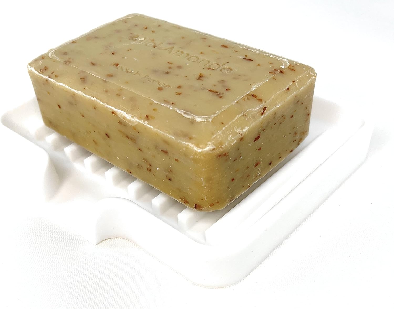 Happitasa Silicone Soap Dish Tray and Sponge Holder with Drain Chute, Pack of 2 | Bathroom and Kitchen Sink Organizer Caddy (White, 5.2"x4", 7.2 Ounces)