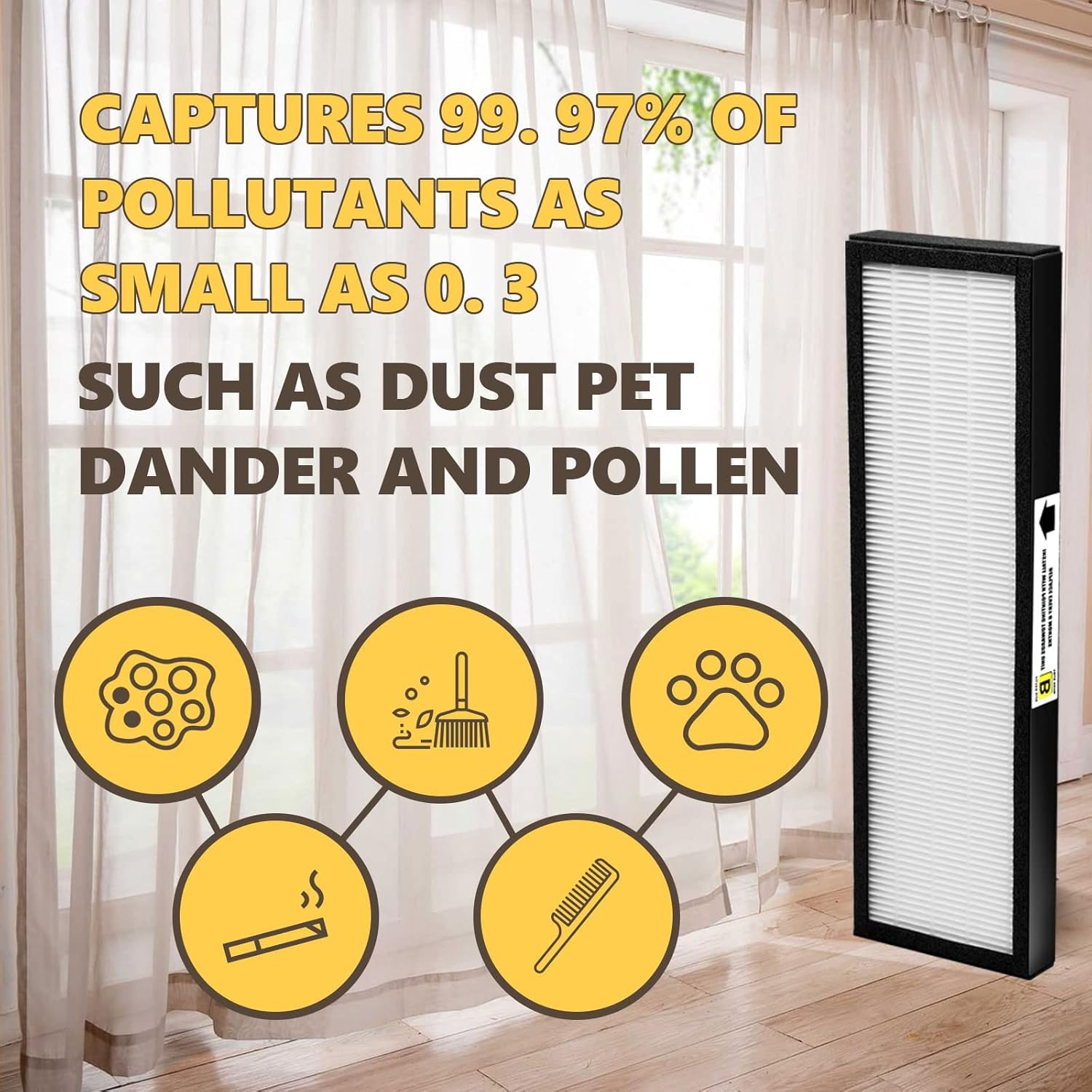- 【High Efficiency Premium H13 HEPA Filter】 2 Premium H13 grade true HEPA material are included, captures 99% of particles down to 0.3 microns in diameter. Great Power for absorbing household odors from airbornes, such as smoke odors, pet odors, cooking odors, and VOCs.