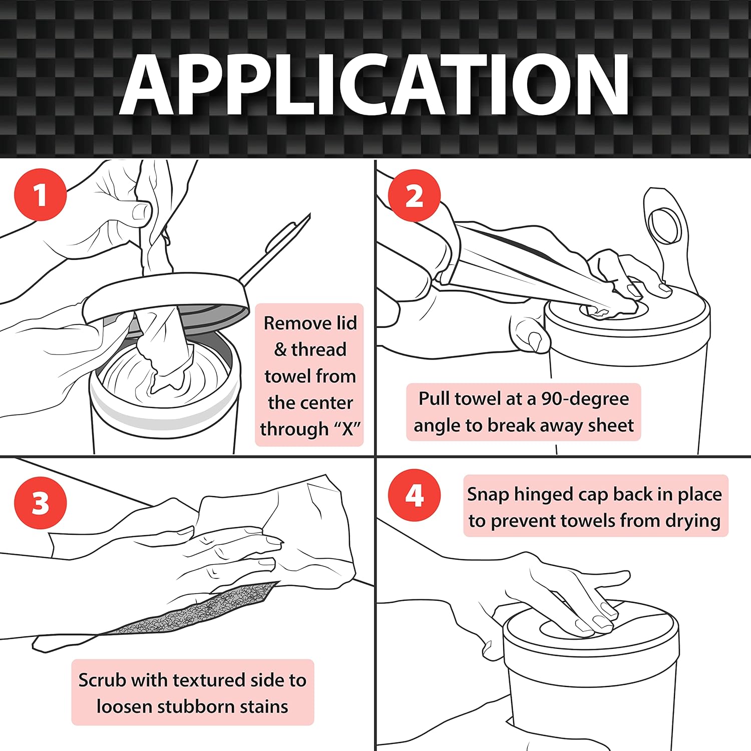 - ALL-IN-ONE CLEANING WIPE FOR HOME & AUTO: These heavy duty, versatile wipes remove grease, tar, paint, oil, ink, adhesive, dirt, and more. So, you won’t need to rely on different types of cleaning towels for the vehicles you service or maintain. At home, these wipes will remove those stains and spills that keep sticking around.