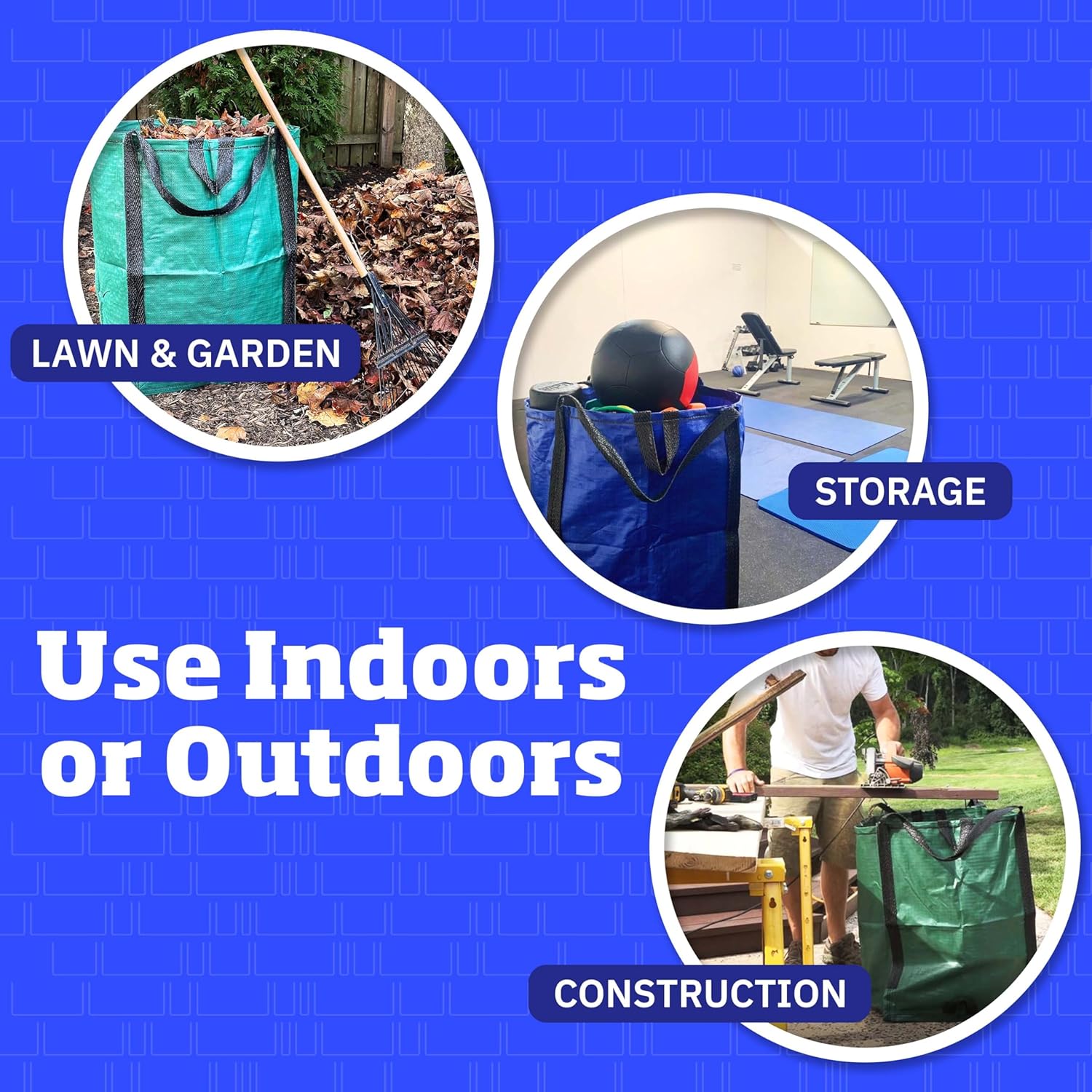 - MULTI-USE: Use both indoors and outdoors. Whether it is projects in your yard or garden, or storing that extra bedding or holiday decorations, these lawn bags heavy duty are up to the task. The versatility of the DuraSack makes it perfect for garden or yard waste, storm debris cleanup, demolition, home and garage storage, construction and contractor use, or even pop up trash cans for parties.