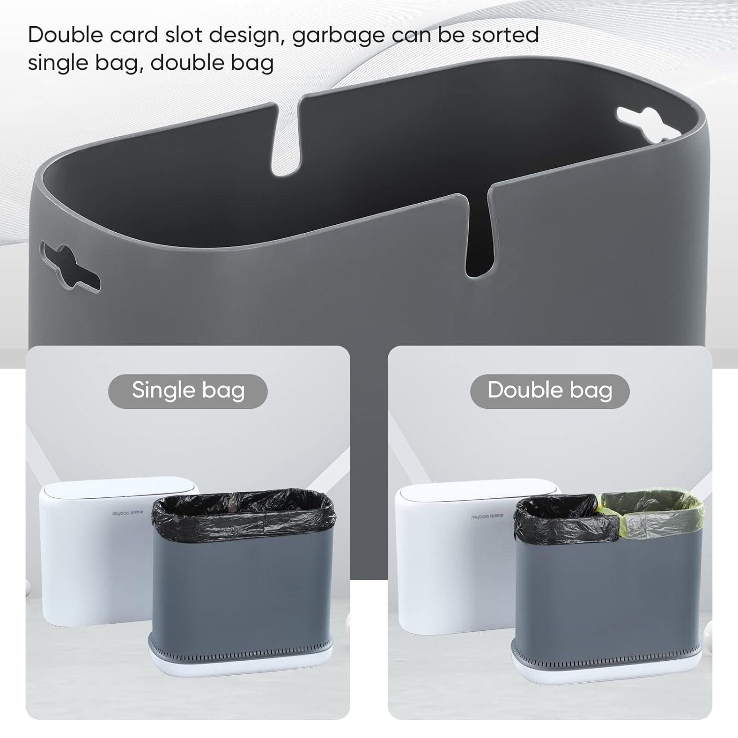 - EXCELLENT MATERIAL, DOUBLE BARREL DESIGN, EASY TO USE: Made of super strong polypropylene, can be wiped clean with a damp cloth directly, the plastic inner barrel can be covered with two garbage bags, which is convenient for garbage classification and placement, and the inner barrel can be easily disassembled, which is convenient for garbage disposal, scientific The design and sturdy material will be a good helper for your life.