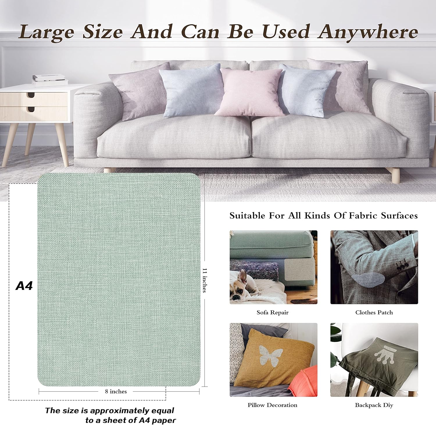 KING MOUNTAIN Coarse Linen Repair Patches, Self-Adhesive Linen Fabric Patches, 8X11 inch Extra Size, Multi Color, Can be Used for Linen Sofa Repair and Linen Clothes Repair(8" x 11",Light Green)