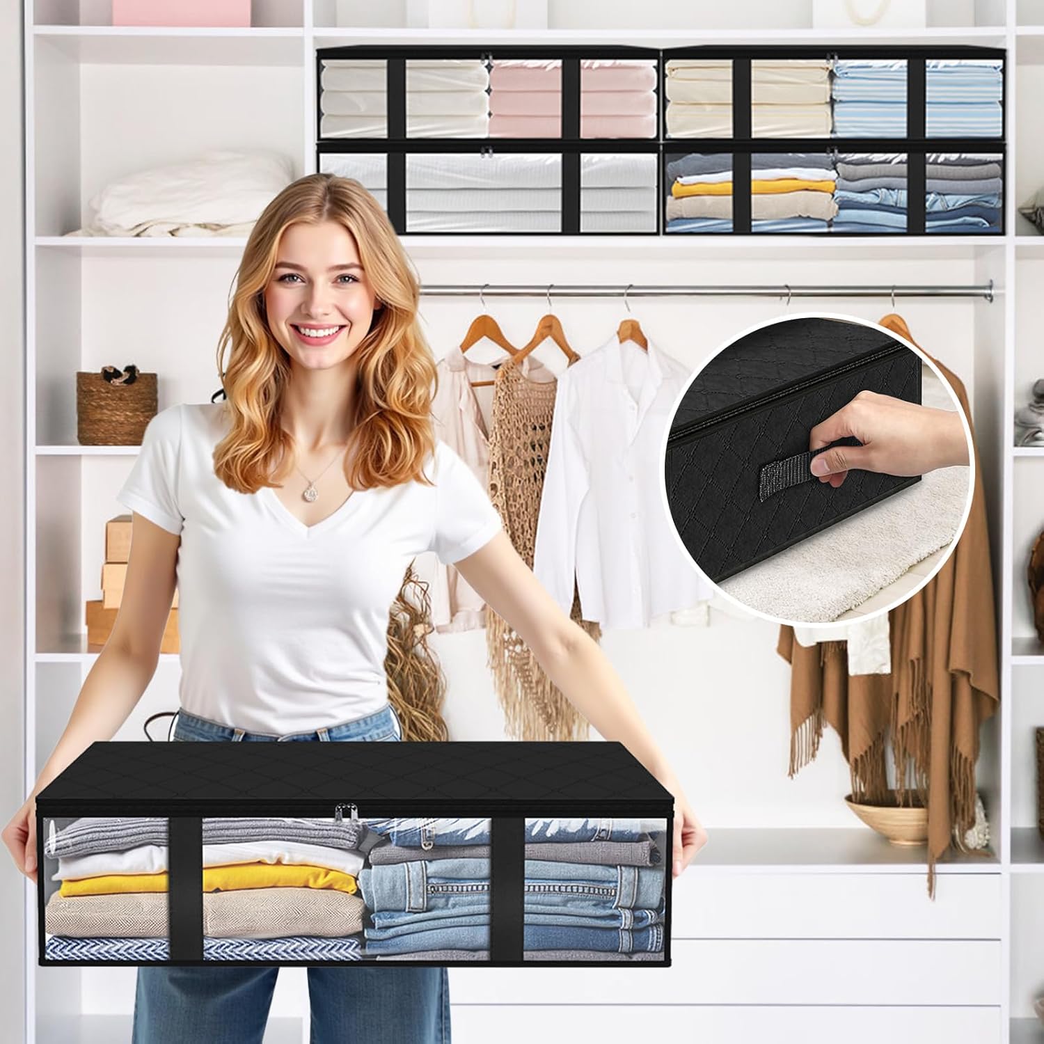 StorageRight Under Bed Storage Bins, 2-Pack 40L Foldable Fabric Storage Bags with Transparent Window, Breathable Organizer for Clothes/Blanket/Comforter/Quiltr, Black