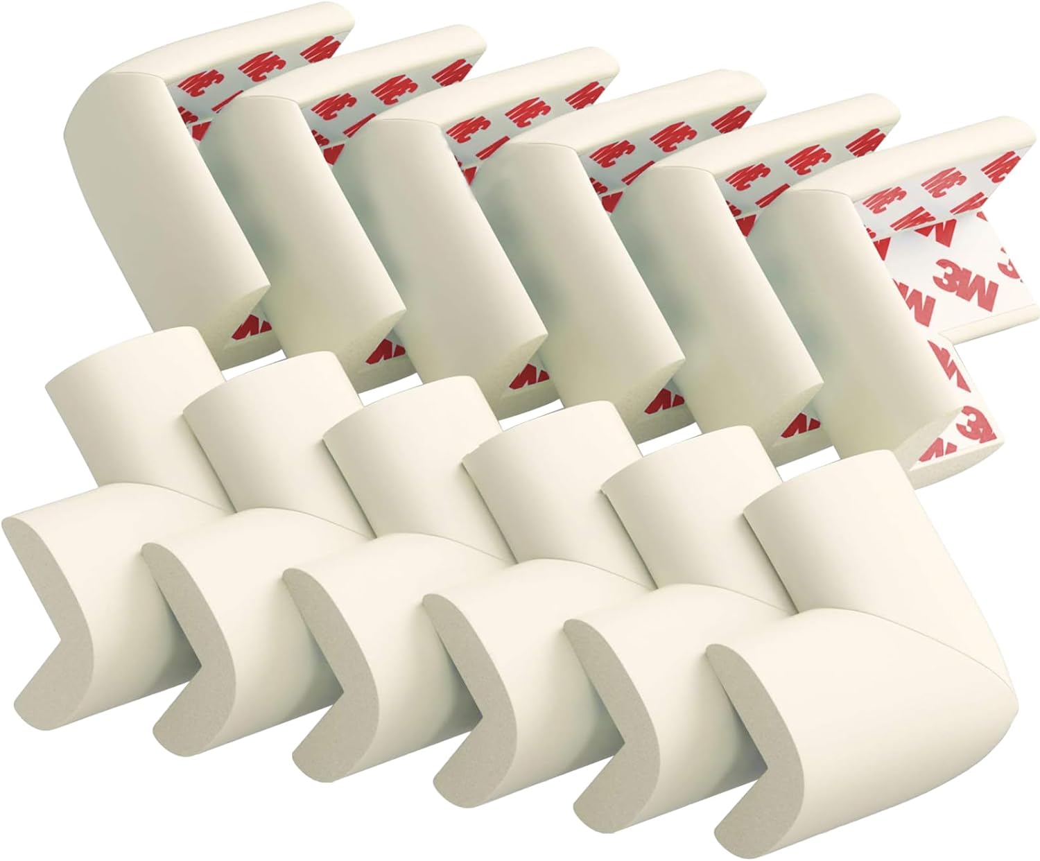 12 Pack Corner Protector Baby Proofing Edge and Corner Guards, Soft Safety Pre-Taped Rubber Foam Furniture Bumpers for Fireplace, Table, Stair, Cabinet (Off White)