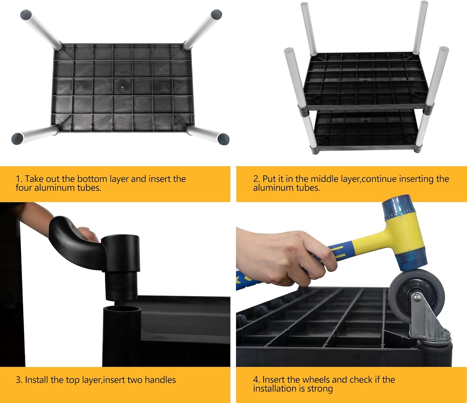 - π Dear customer, it is difficult to disassemble the utility cart after installation, so please make sure that the 1" plastic side on each trayβs back is placed in the same direction before installation. Please contact us if you have any questions, and we will answer you ASAP.
