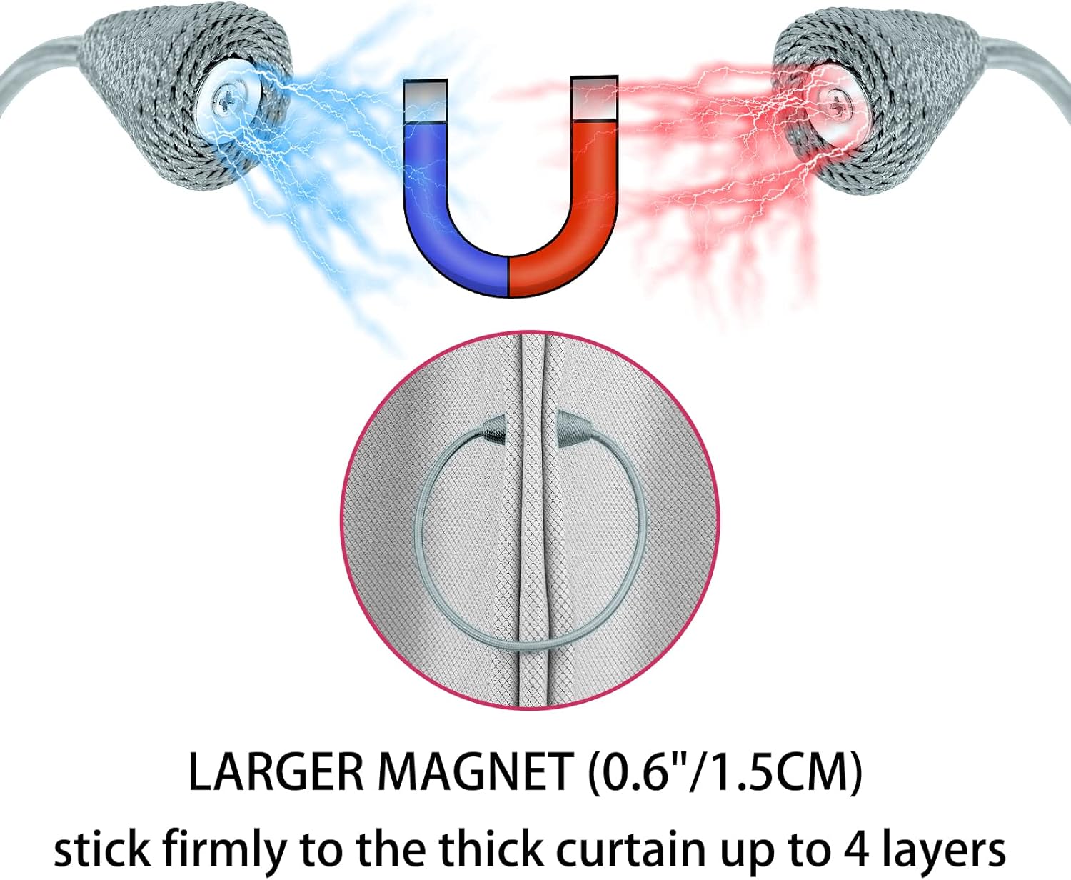 - WIDE APPLICATION: The length and binding method can be adjusted freely according to the thickness of the curtain. It is widely used in curtains in different places such as bedroom, living room, dining room, bathroom, kitchen, office, courtyard and so on. Different colors of magnetic drape tiebacks adorn your curtains, which can change different styles, giving the curtains a unique charm