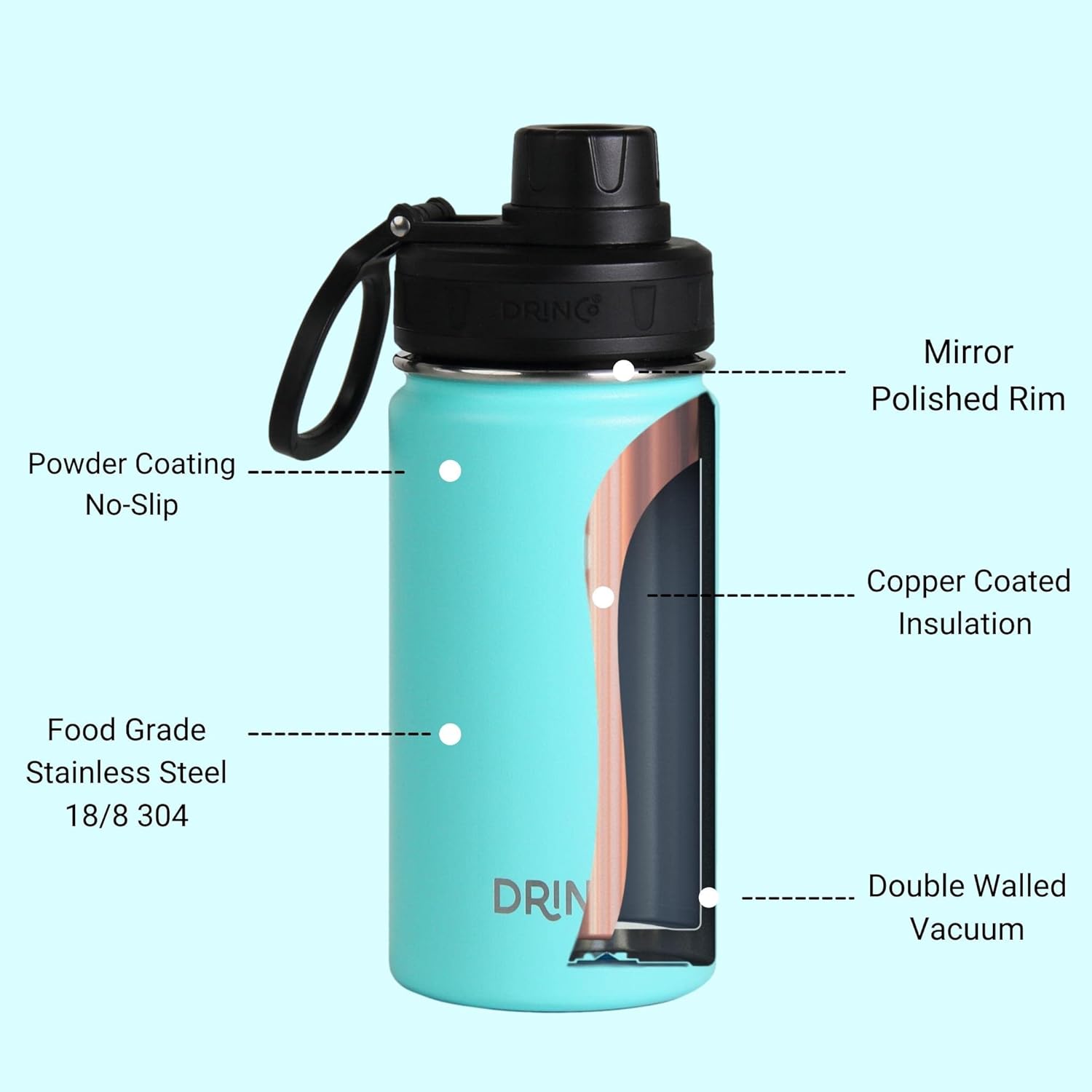 DRINCO Stainless Steel Water Bottle Spout Lid Vacuum Insulated Double Wall Water Bottle Wide Mouth (40oz 32oz 22oz 18oz 14oz) Leak Proof Keeps Cold or Hot (14 oz, 14oz Teal)