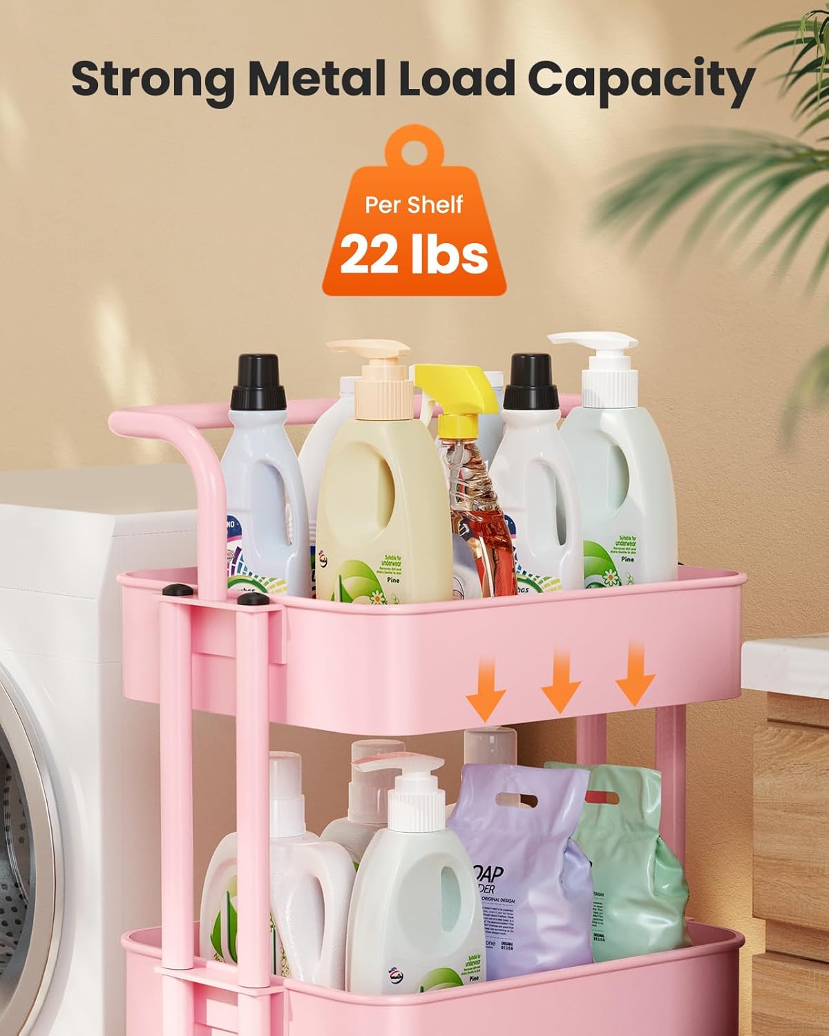 - PRACTICAL DESIGN: The 3 tier rolling cart is designed with ideal shelf spacing to allow easy access to items. The dual columns of the utility cart ensure stability while the open storage baskets provide air movement.
