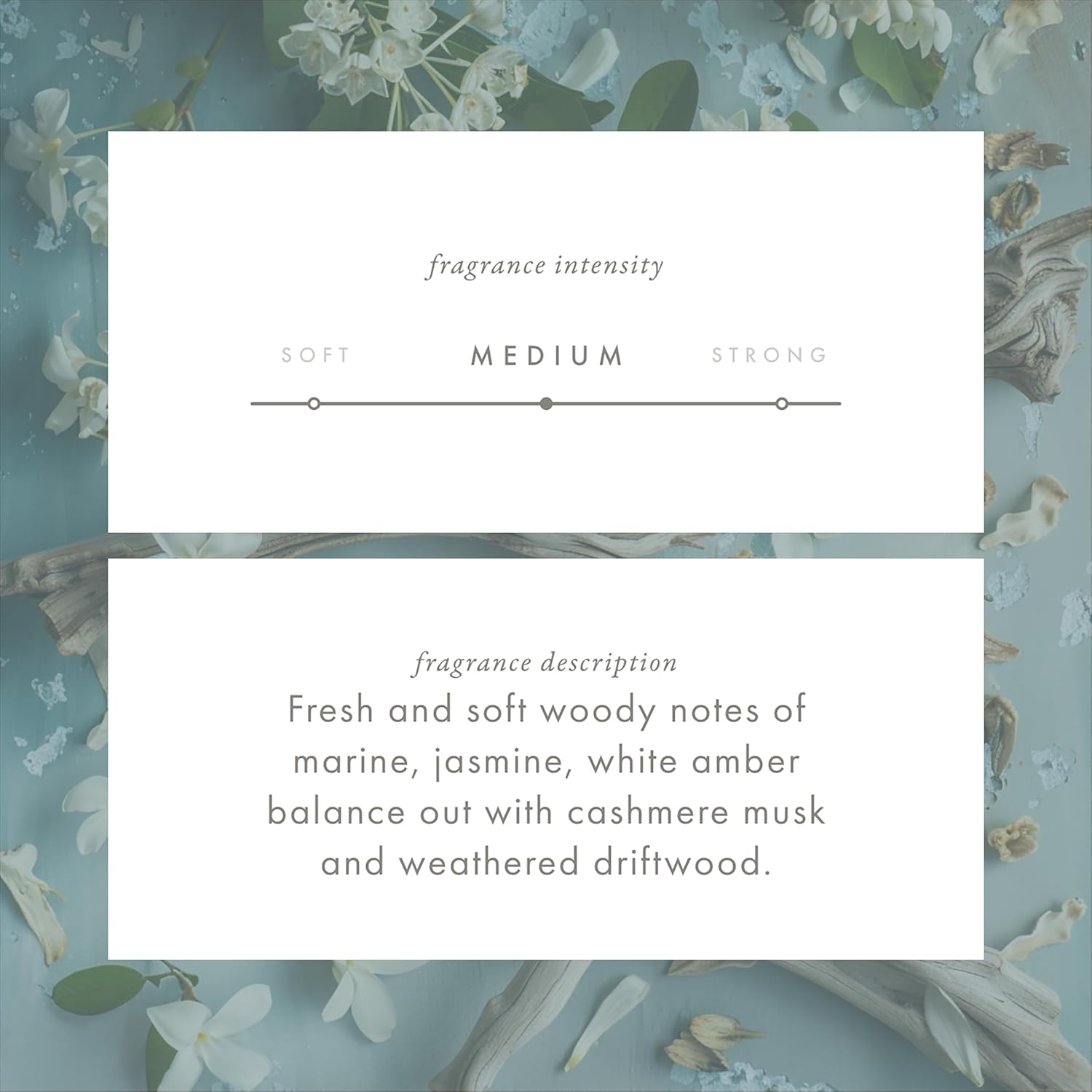 - WAKE WITH THE SUN AND AMBLE ALONG A PEBBLED COVE. Calm waves gently lap at the shore as refreshing seaside breezes bring notes of salted air mingled with faraway jasmine and white amber. Just as you glimpse a sense of longing for shores unknown, cozy notes of soft cashmere musk and weathered driftwood ground you in utter contentment and gratitude for the here and now.