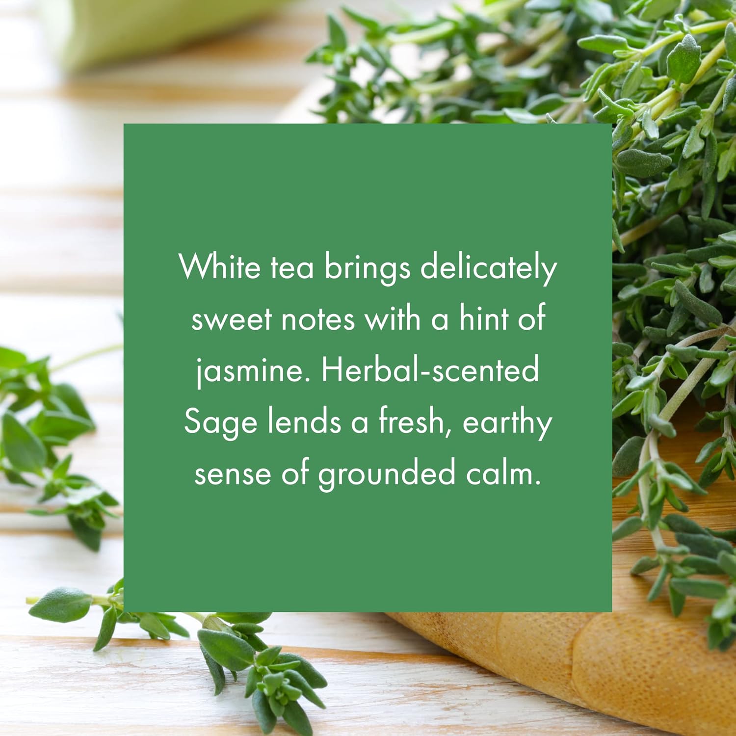 - EXQUISTE & EXOTIC BLEND OF FRAGRANCES. White tea brings delicately sweet notes with a hint of jasmine. Herbal-scented Sage lends a fresh, earthy sense of grounded calm. Together as one, bright citrus and warm amber notes invite the senses on an aromatic adventure, beautiful and balanced.