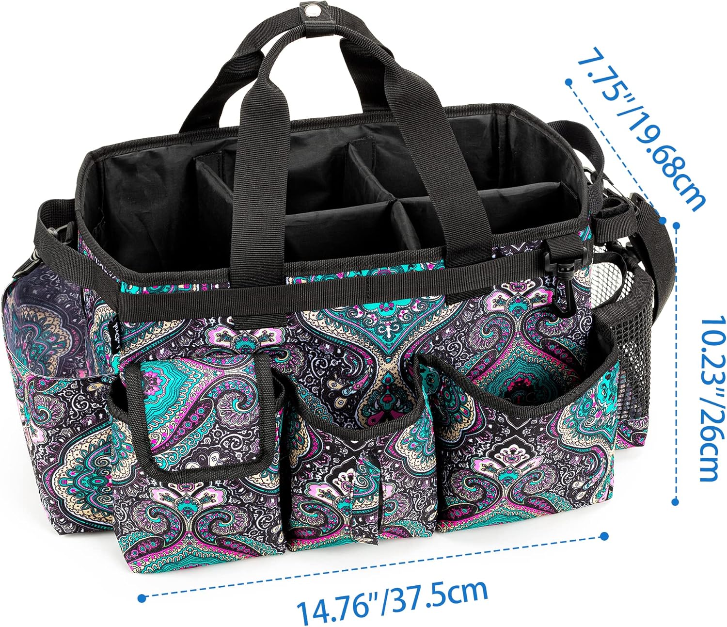 LoDrid Large Wearable Cleaning Caddy Bag with Detachable Divider, Cleaning Supply Tote Organizer with Handles and Adjustable Shoulder Strap for Cleaners & Housekeepers, Totem