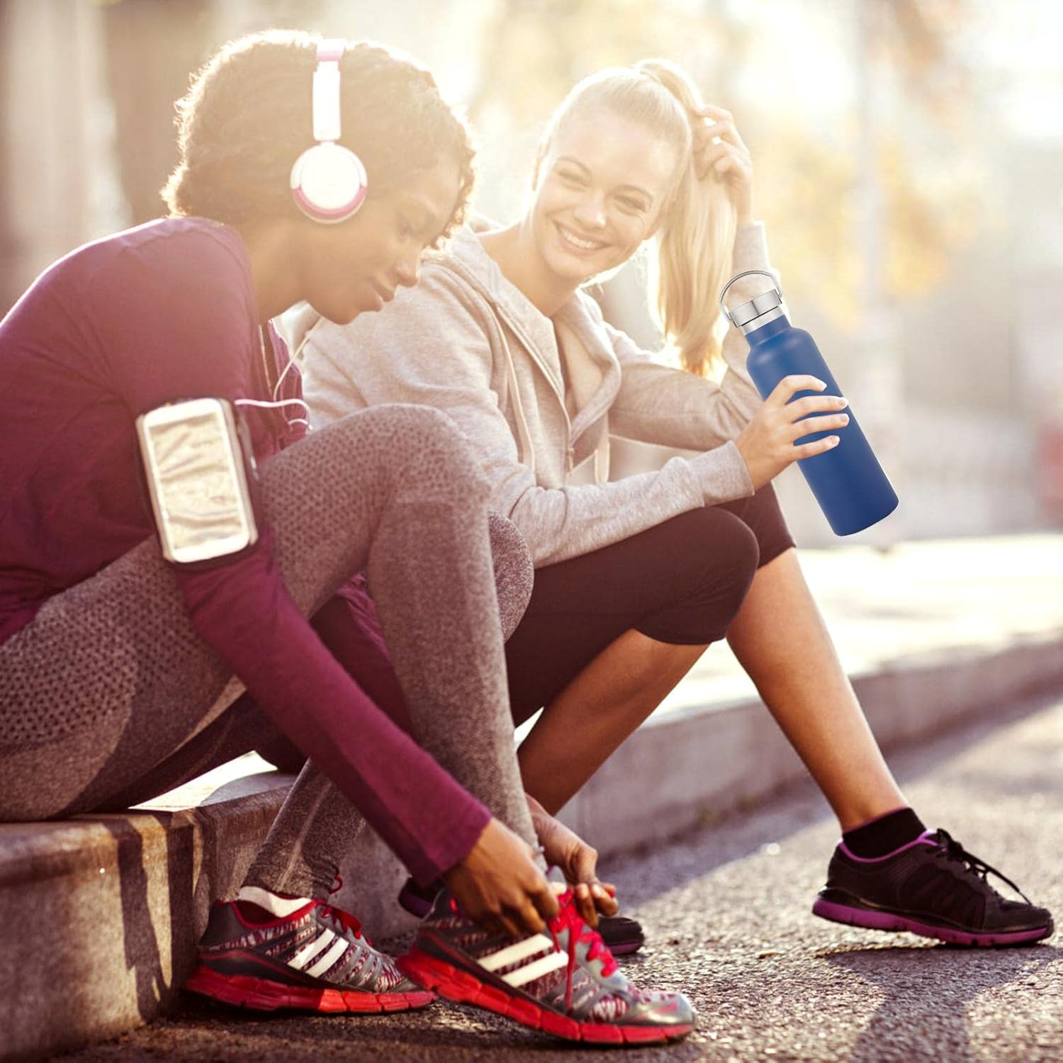 Neihepal 20 oz Insulated Water Bottles Bulk 8 Pack,Stainless Steel Double Wall Sport Bottle with Lid of Handle,Metal Reusable Flask with Cup Cap for School,Hikers,Gift (Navy,Set of 8)