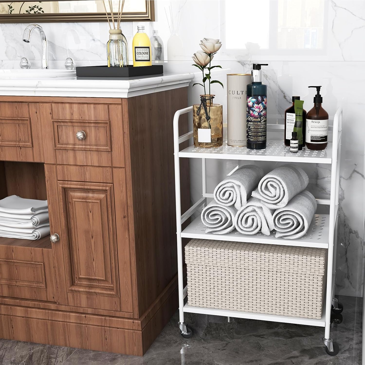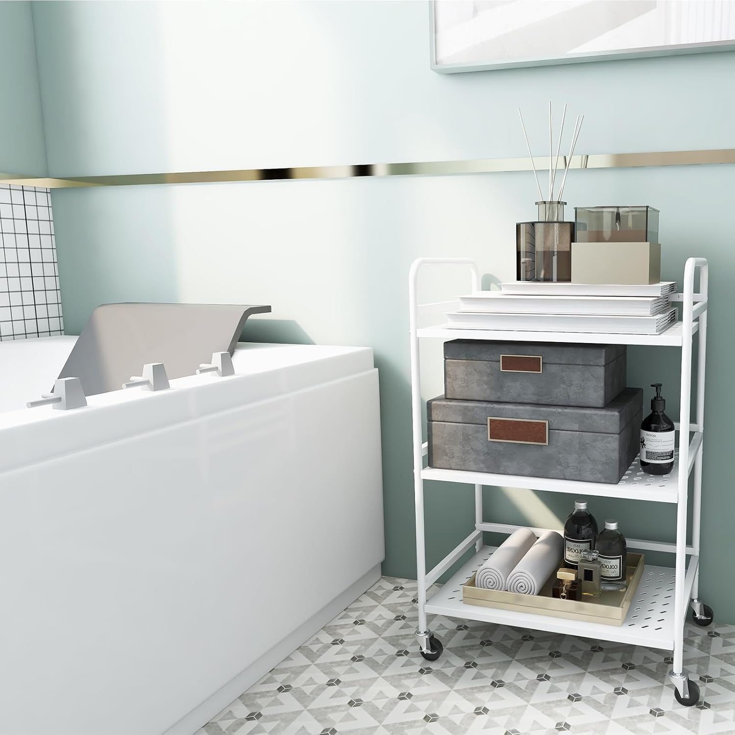 HDANI 3 Tier Rolling Cart,Heavy Duty Multifunctional Metal Frame-Supports 22 Lbs Per Tier,Rolling Cart with 2 Lockable Wheels for Office,Home,Bedroom,Kitchen,Bathroom (White)…