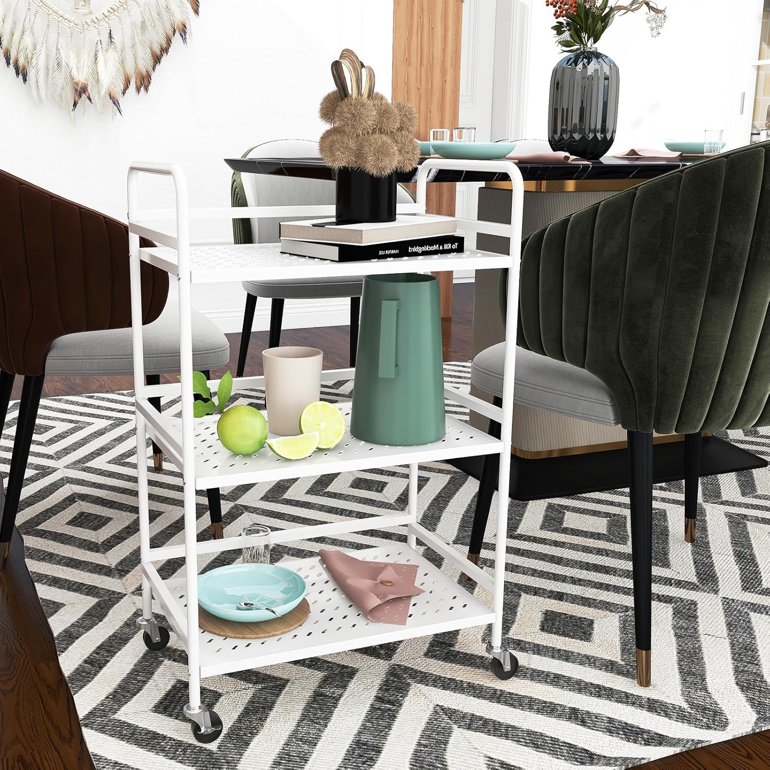 - 【Ingenious Design】This 3 Tier Rolling Cart Is Made From Laser-engraved Columns And Partitions For A Neat,Uniform Look.The Open Design Makes It Easy To Access Your Items.Every Detail Has Been Considered In The Design Of This Carts With Wheels.