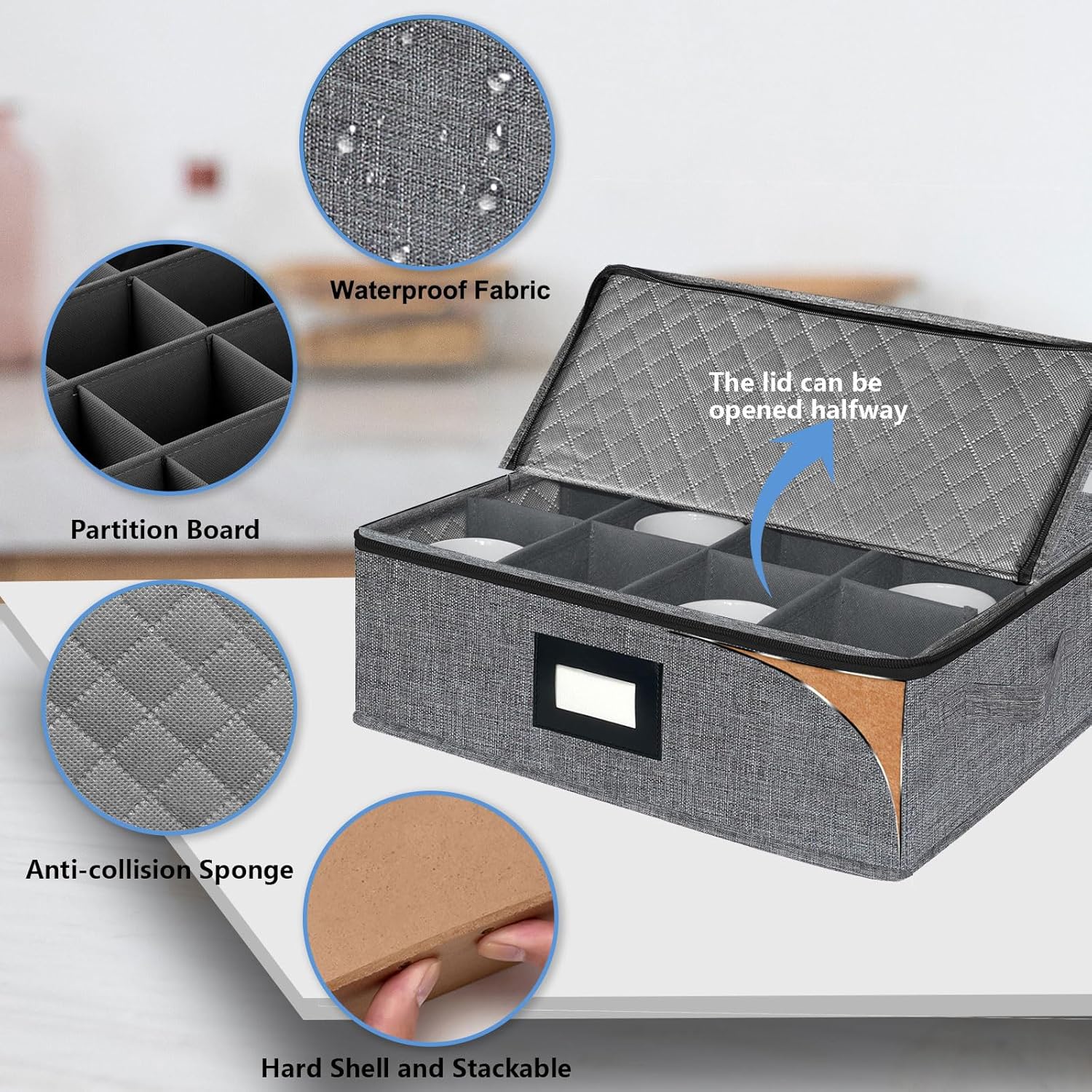- 🥛[Perfect Design] - The mug storage box holds 12 Coffee Mugs and Tea Cups, and measures 16.5x13x6inches. Each china storage box comes with a label holder for easy identification of the contents.