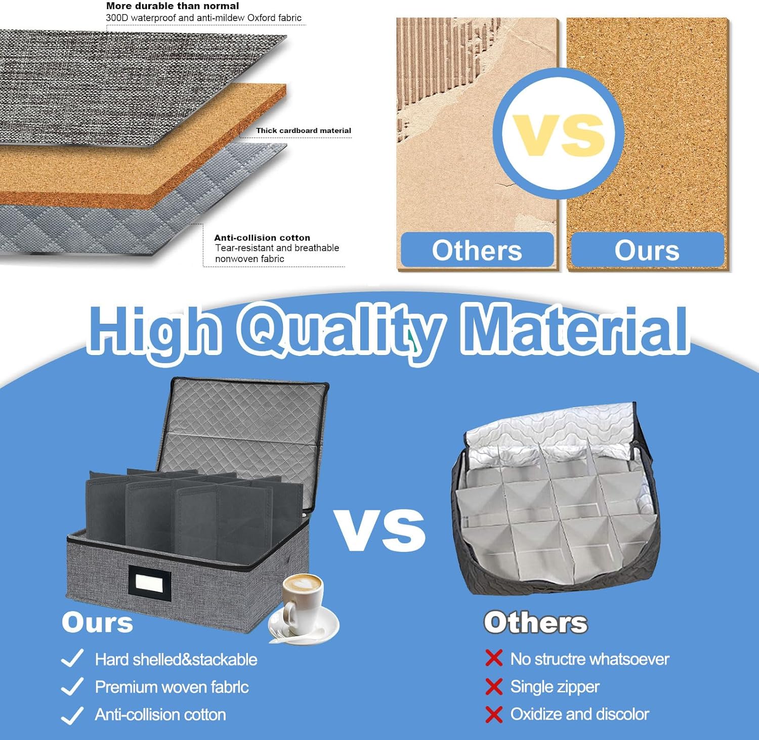 - 🥛[Premium Durable Material] - Stackable coffee mug storage box is made of premium TC fabric and sturdy thick cardboard,the lid made with thick cardboard inside,the side pieces provide additional protection,so it's more sturdy than others.