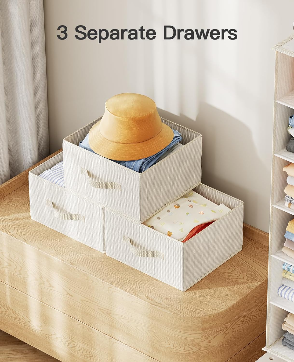 - Special Feature : Hanging Shelves for Closet with 3 Removable Drawers & Side Pockets