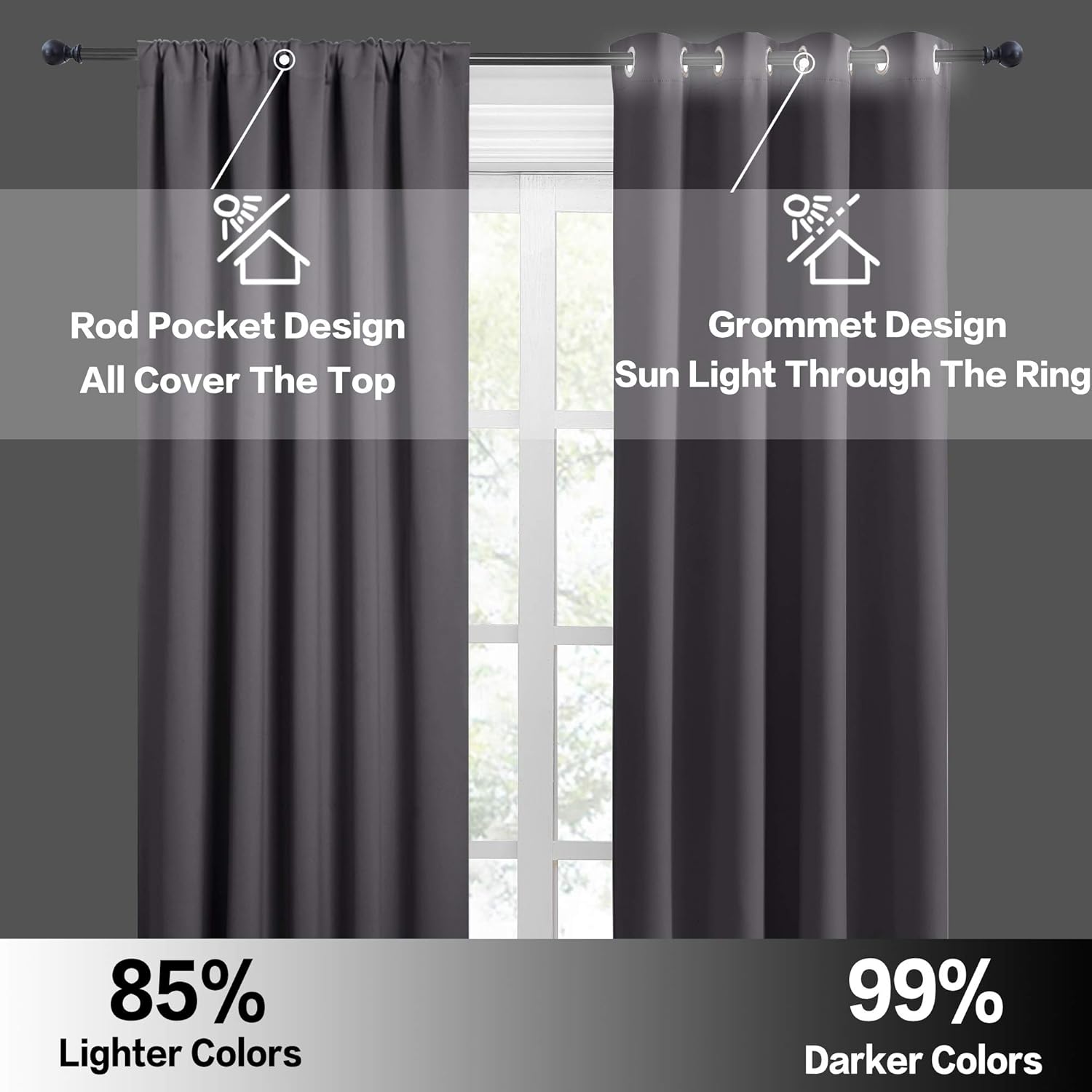 - LIGHT BLOCKING - Curtains block 85-95% sunlight and UV rays (Dark color works better) for maximum privacy and undisturbed sleep. Thermal property of the blackout curtains ensure that the room temperature is regulated. Protect your indoor furniture from directly exposing to the sun.