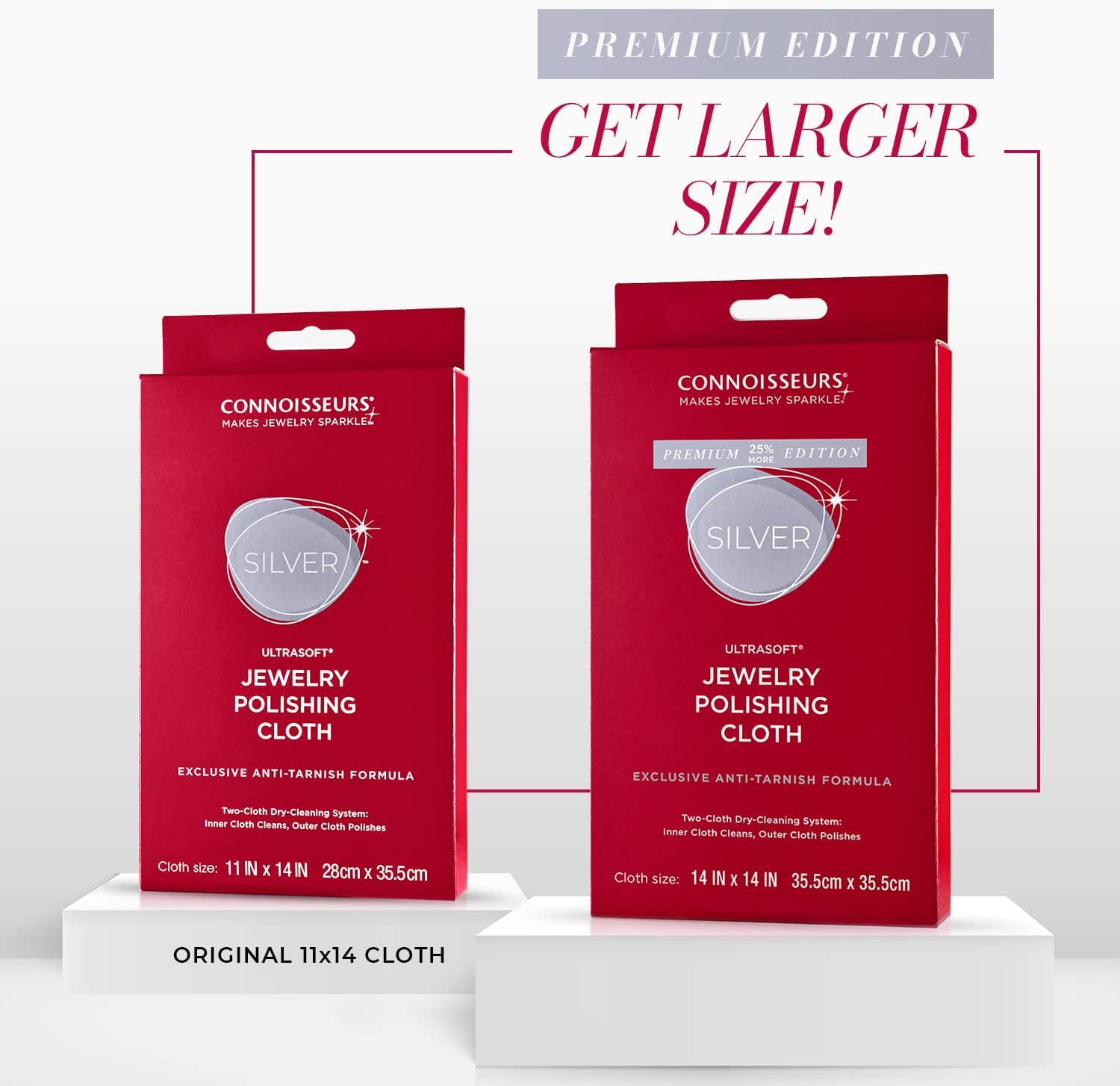 CONNOISSEURS Premium Edition Extra Large Polishing Cloth for Silver Jewelry - Ultrasoft Fabric with Anti-Tarnish Formula - 14x14 Inches