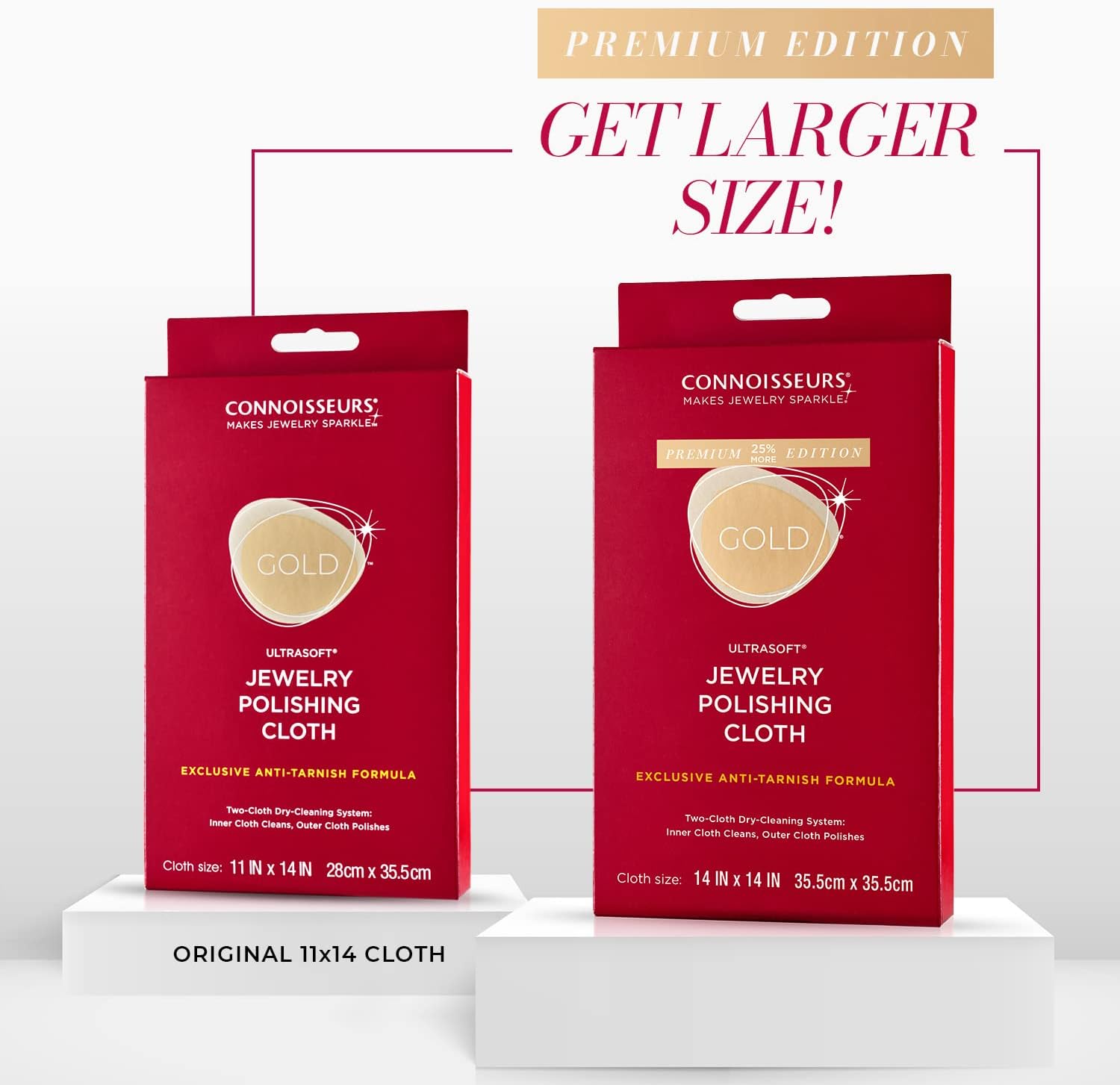 CONNOISSEURS Premium Edition Extra Large Polishing Cloth for Gold Jewelry - Ultrasoft Fabric with Anti-Tarnish Formula - 14x14 Inches