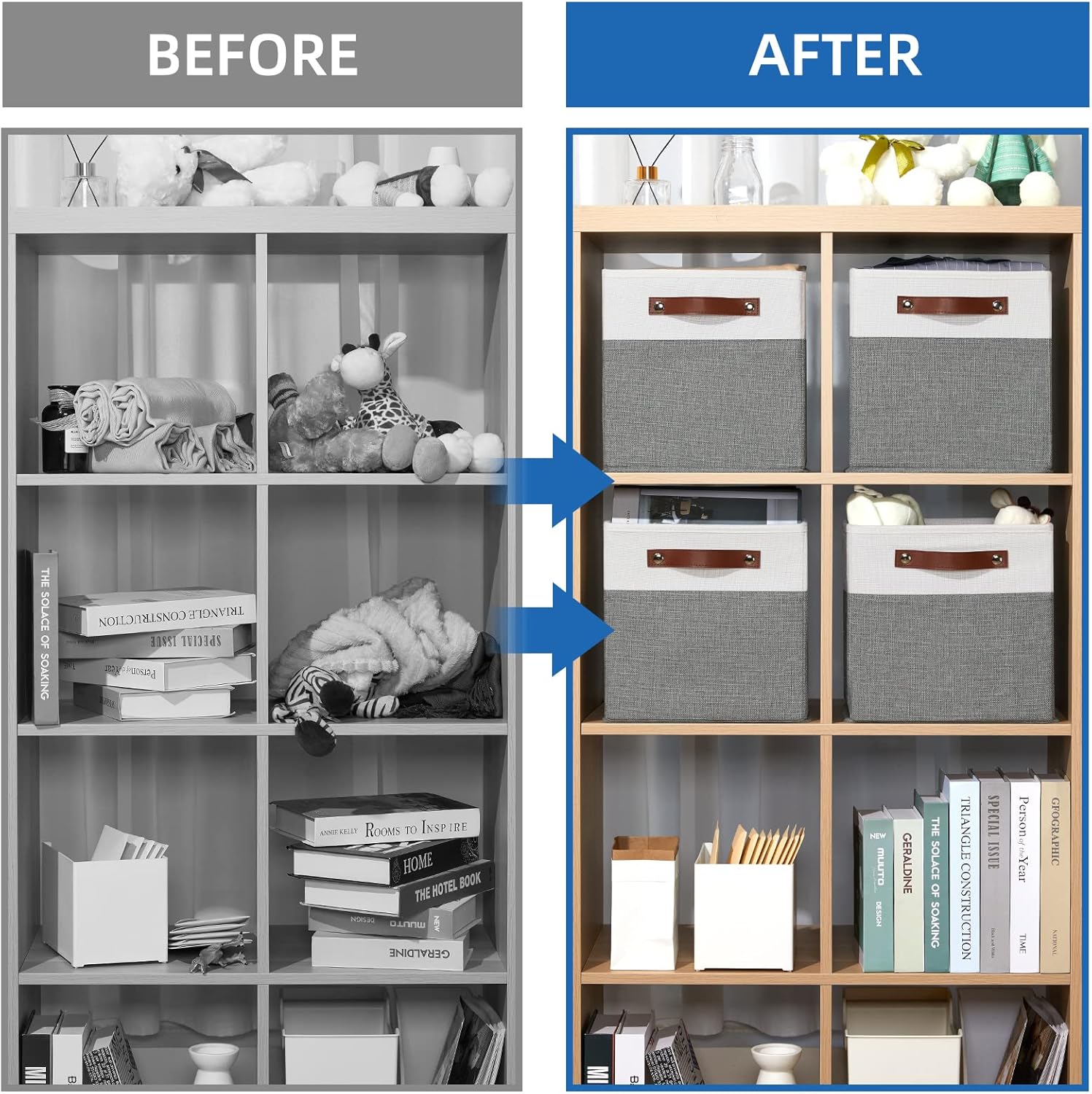 - FOLDABLE STORAGE CUBES: These fabric cube storage baskets come with a foldable feature that convenient to save space and take along. You could simply fold it up when not in use, which will take full advantage of your closet or shelf, and also save space