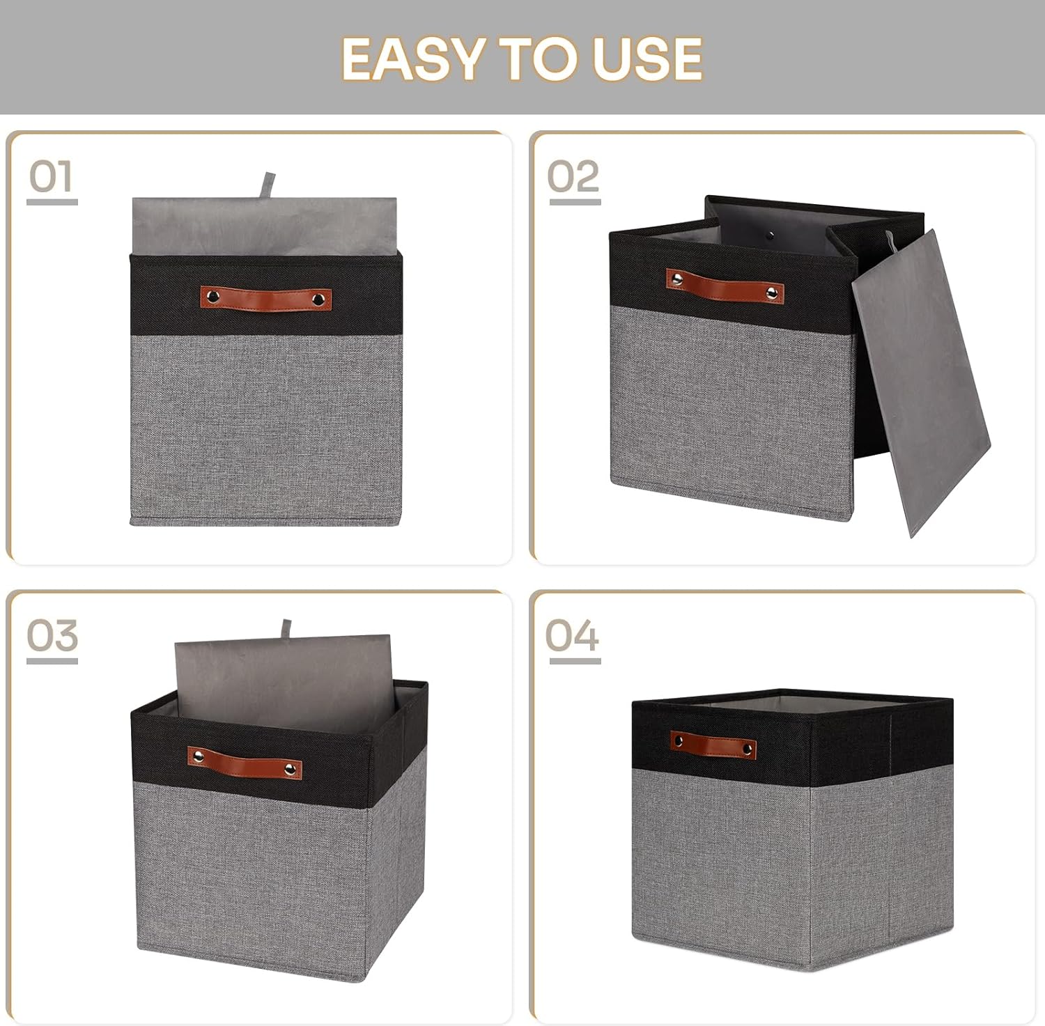 - 【Premium Material】The fabric used in the cube storage organizer shelves is fashionable and breathable, sturdy, breathable fabric materials with no peculiar smell, and the cardboard inside is strong and easy to fold. These collapsible storage bins are sturdy enough to hold your stuff well. The leather handle is durable and easy to carry. The closet storage bins for cube organizer are easy to clean, If cube storage organizer bins is dirty, wipe cube storage bins with a damp cloth