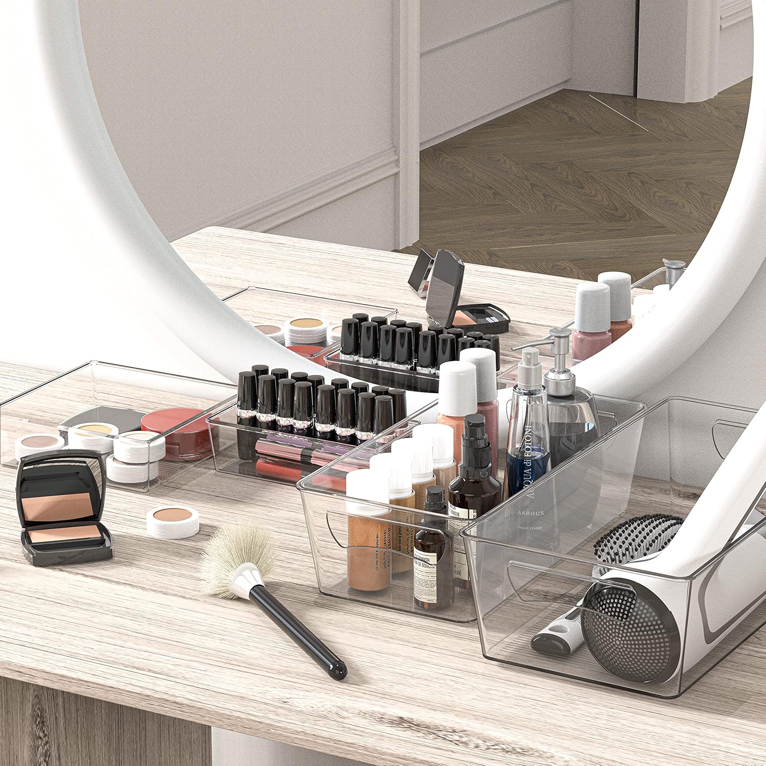 - 8 Pcs assorted clear storage bins - 4 Pcs Large 14 x 7 x 3.75 in. | 4 Pcs Medium 12 x 6.2 x 3.4 in.