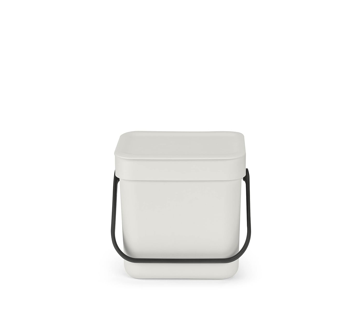 Brabantia Sort & Go Food Trash Can (0.8 Gal/Light Gray) Small Countertop Kitchen Compost Caddy with Handle & Removable Lid, Easy Clean