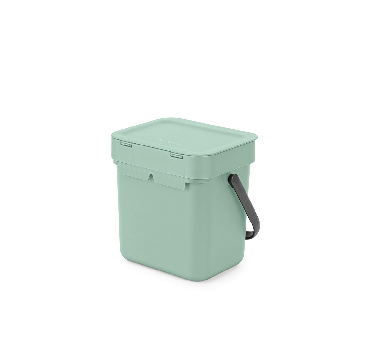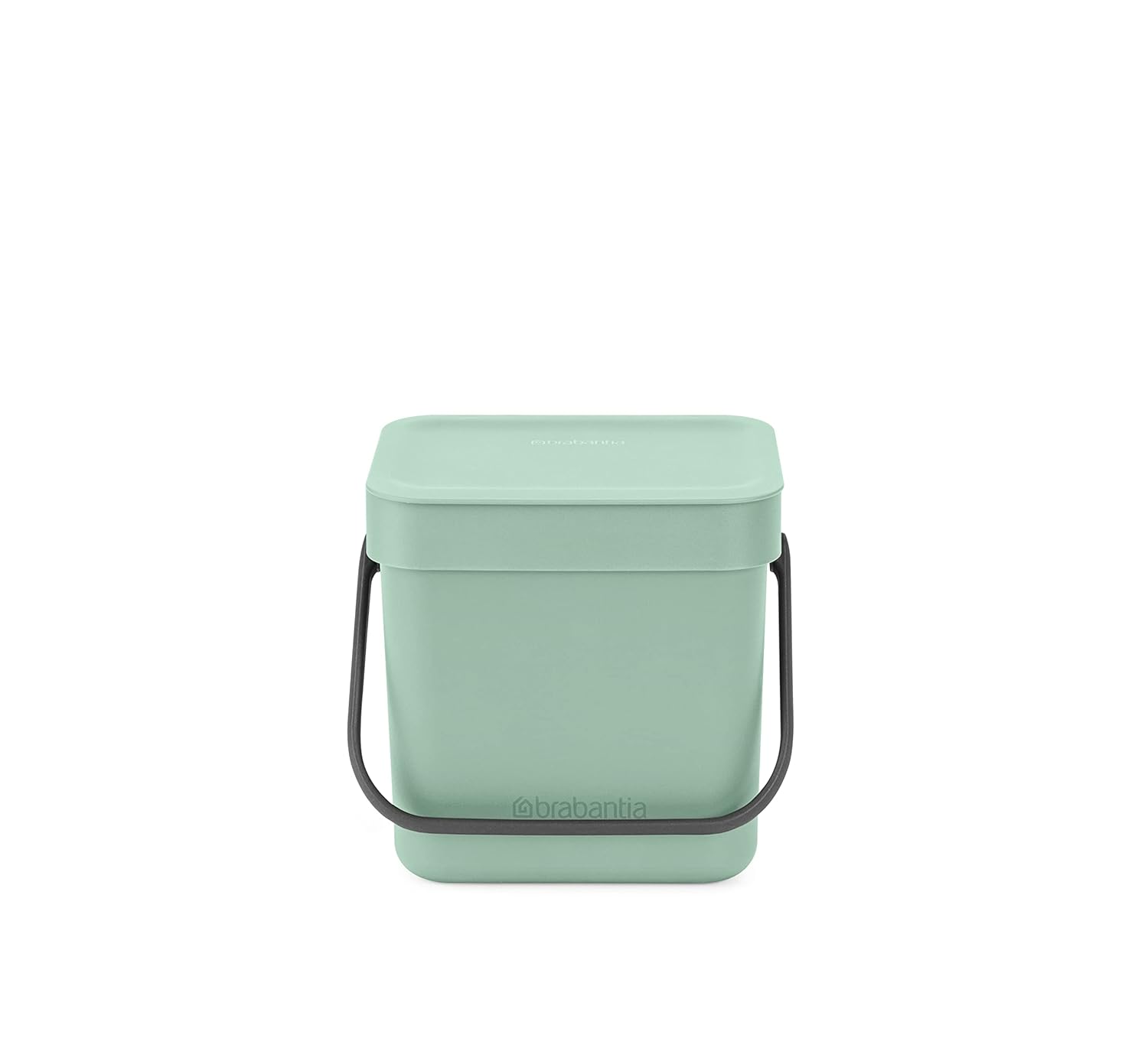 Brabantia Sort & Go Food Trash Can (0.8 Gal/Jade Green) Small Countertop Kitchen Compost Caddy with Handle & Removable Lid, Easy Clean
