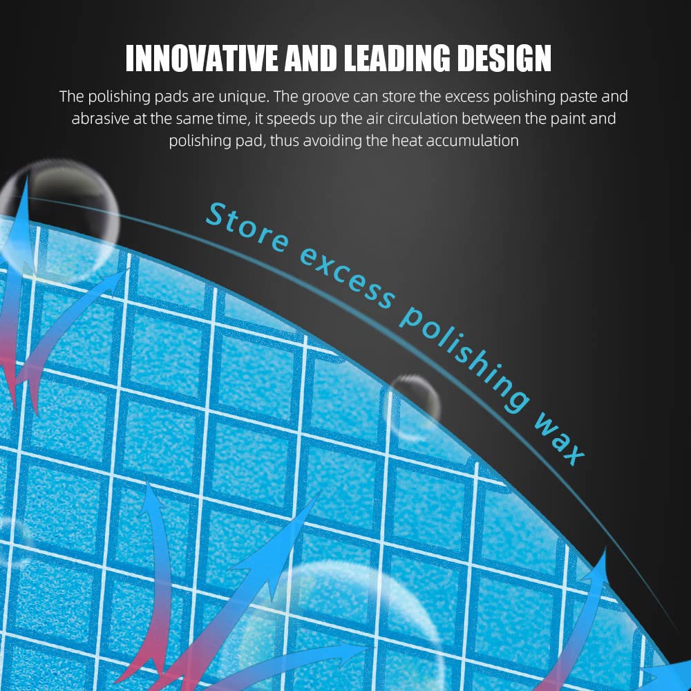 - [Innovative design] The groove can store excess polishing paste and abrasives; at the same time, it speeds up the air circulation between the paint and the polishing pad and avoids the accumulation of heat;