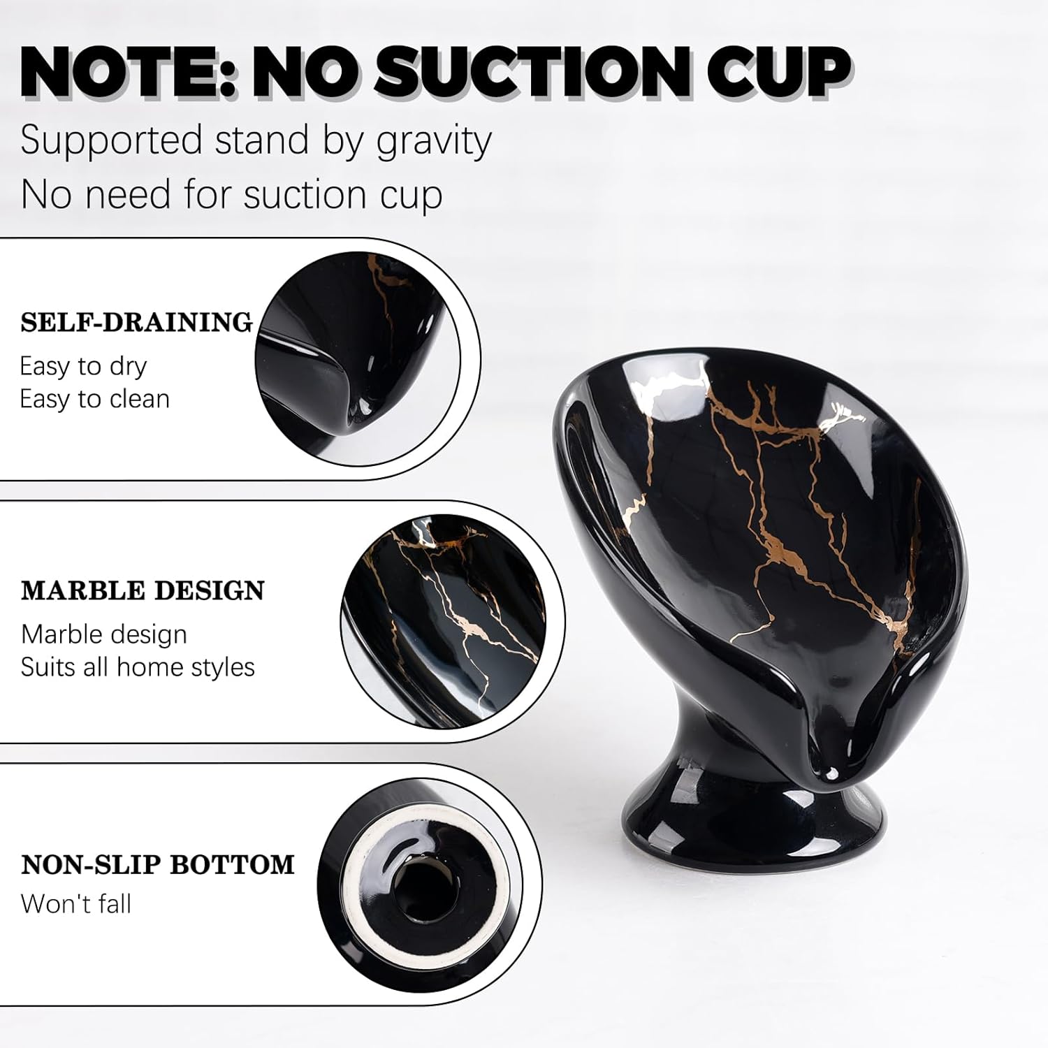- Functional: Enhance your bathroom or kitchen with this black soap dish; it not only keeps your soap organized but also adds a touch of sophistication, making it a beautiful addition to any space; note: this soap dish does not have a suction cup