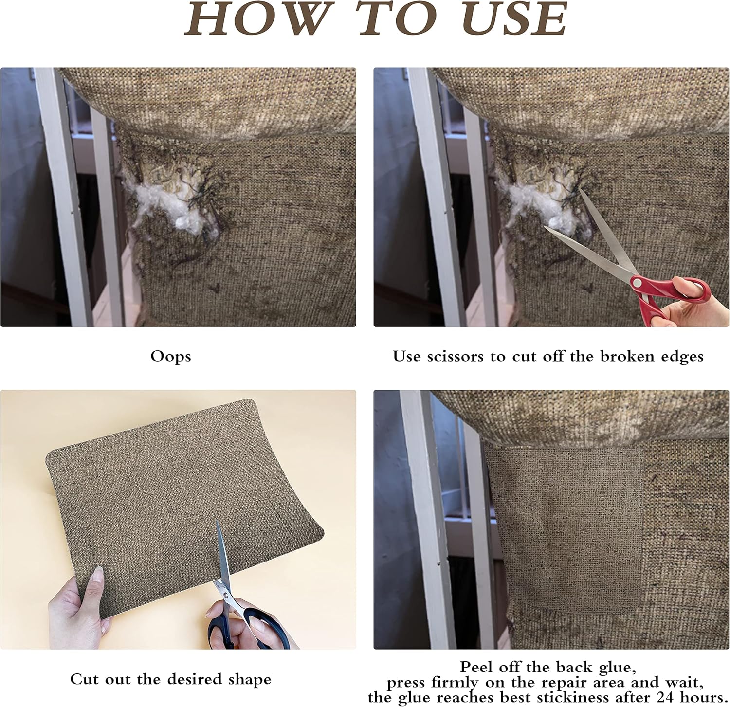 - HIGH QUALITY PRODUCTS: Coarse Linen Patch and strong adhesive. No glue residue, perfect fit in seconds.Brand new upgraded, with more glue, firmly press on the broken parts, the glue reaches the best outcome after 24 hours. Linen is durable, non-pilling, non-fading, non-shrinking and is suitable for all seasons.