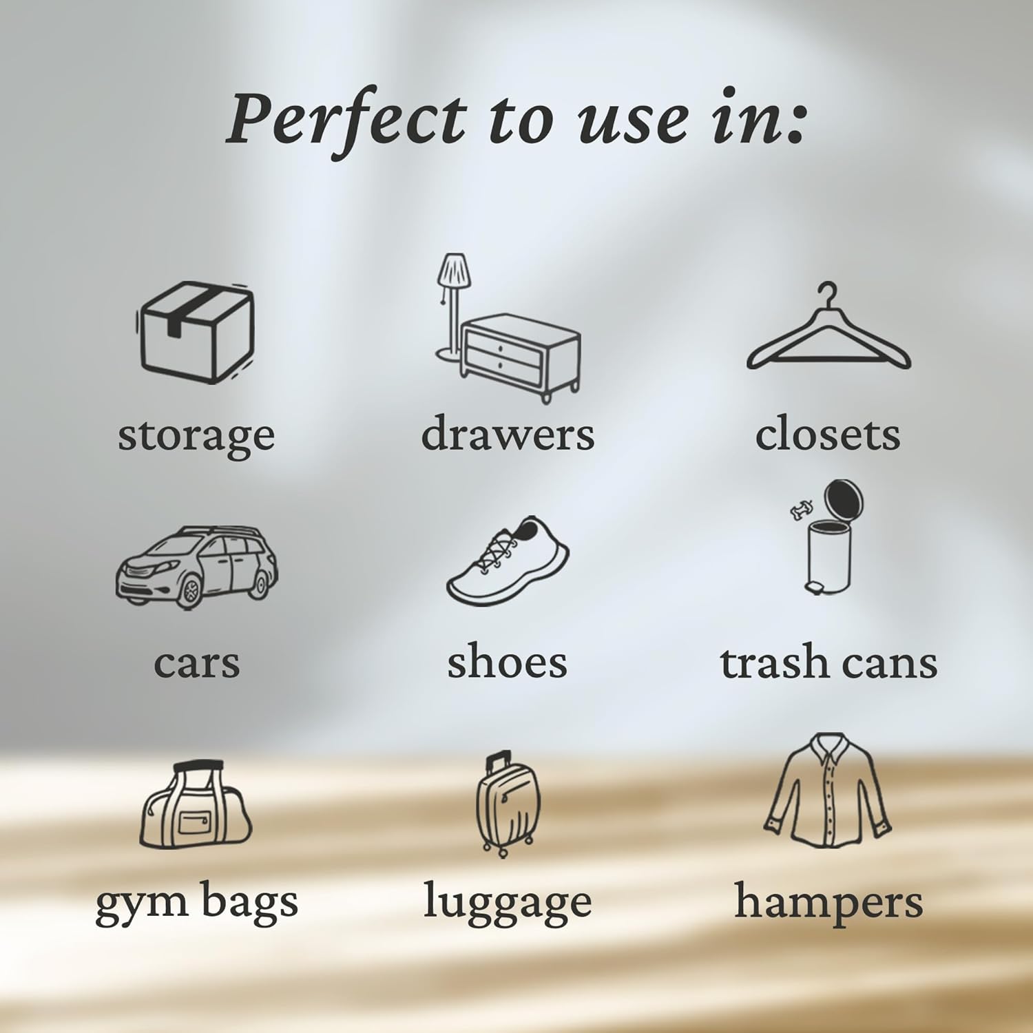 - Convenient, effective sachets that naturally eliminate tough odors for 15-30 days, leaving spaces smelling clean and fresh.