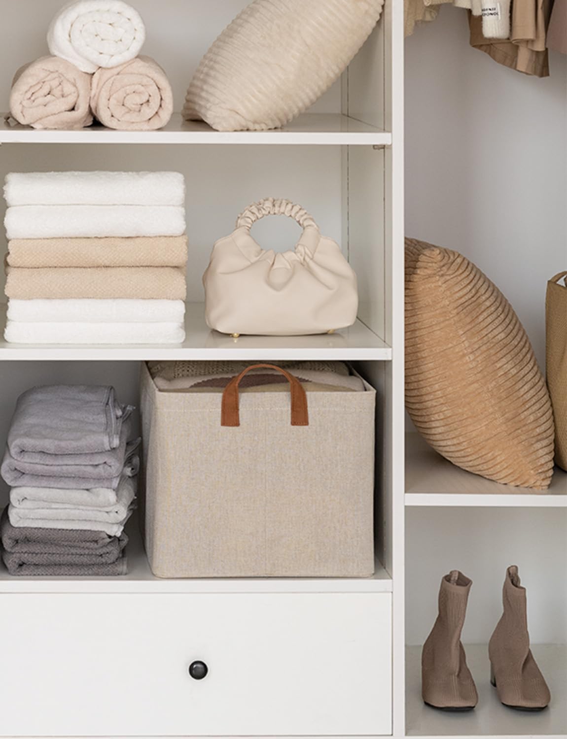 - Use Across Scenario: These shelf storage bins are sturdy enough to be used as clothing containers, helping you effectively organize your bedroom, living room, laundry room, or dorm room with simple and elegant color blocking designs to make your room tidier and prettier.