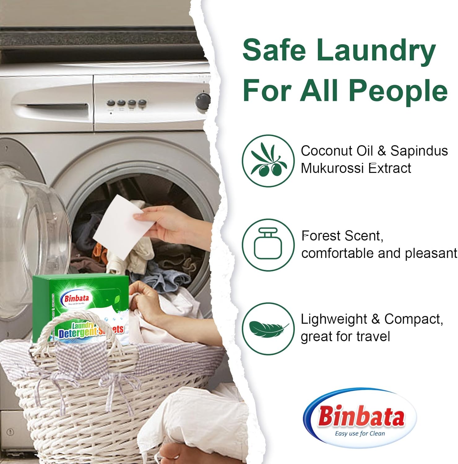 - ššš«šØ ššš¬šš & ššØ šš„šš¬šš¢š: Compared to traditional liquid and powder detergent, Binbata eco laundry detergent sheets adopt plastic-free, zero waste recyclable package, reduces 95% fuel consumption and carbon emissions during the transportation, has and will always work hard to alleviate global warming.