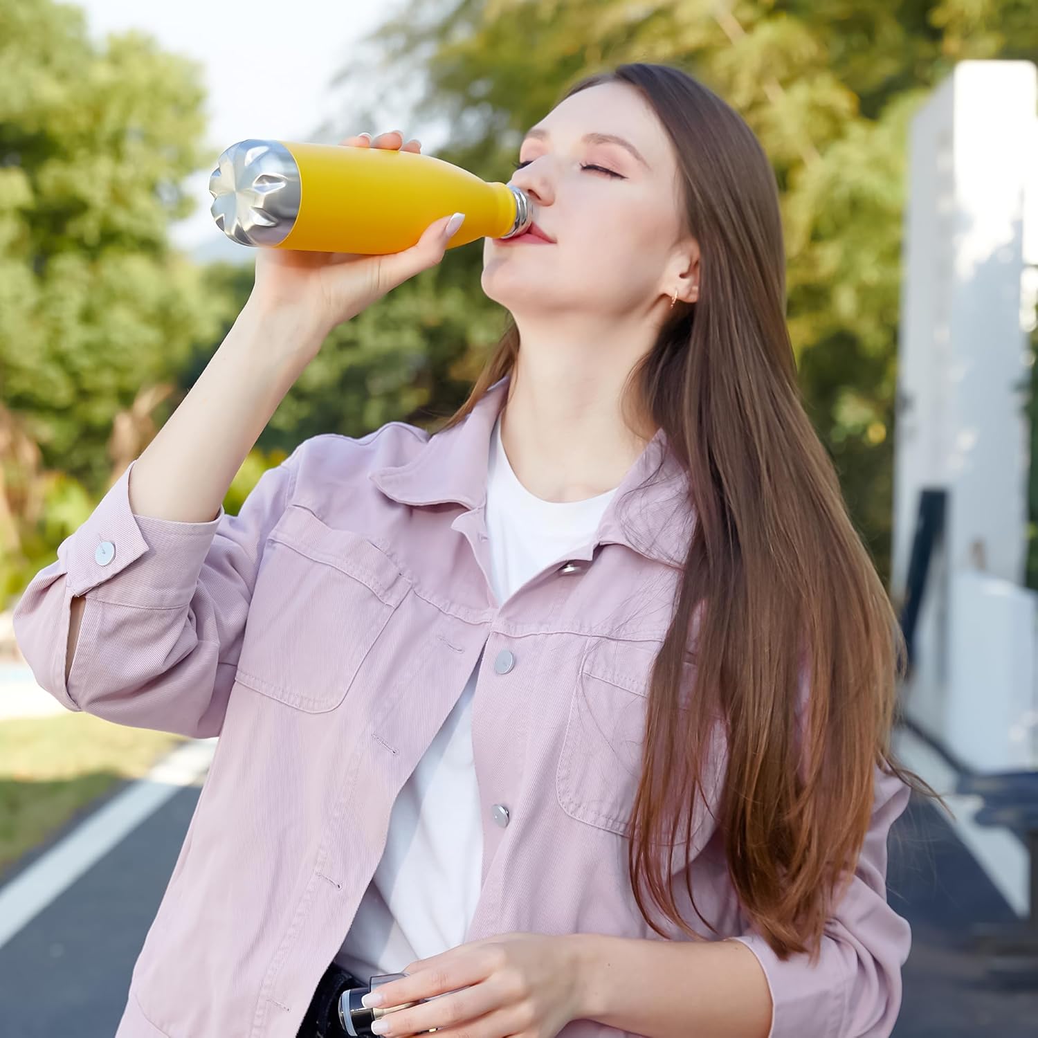 MEWAY 17oz Sport Water Bottle 4 Pack Vacuum Insulated Stainless Steel Leak-Proof Double Wall Cola Shape Water Bottle,Keep Drinks Hot & Cold(Yellow,4 Pack)