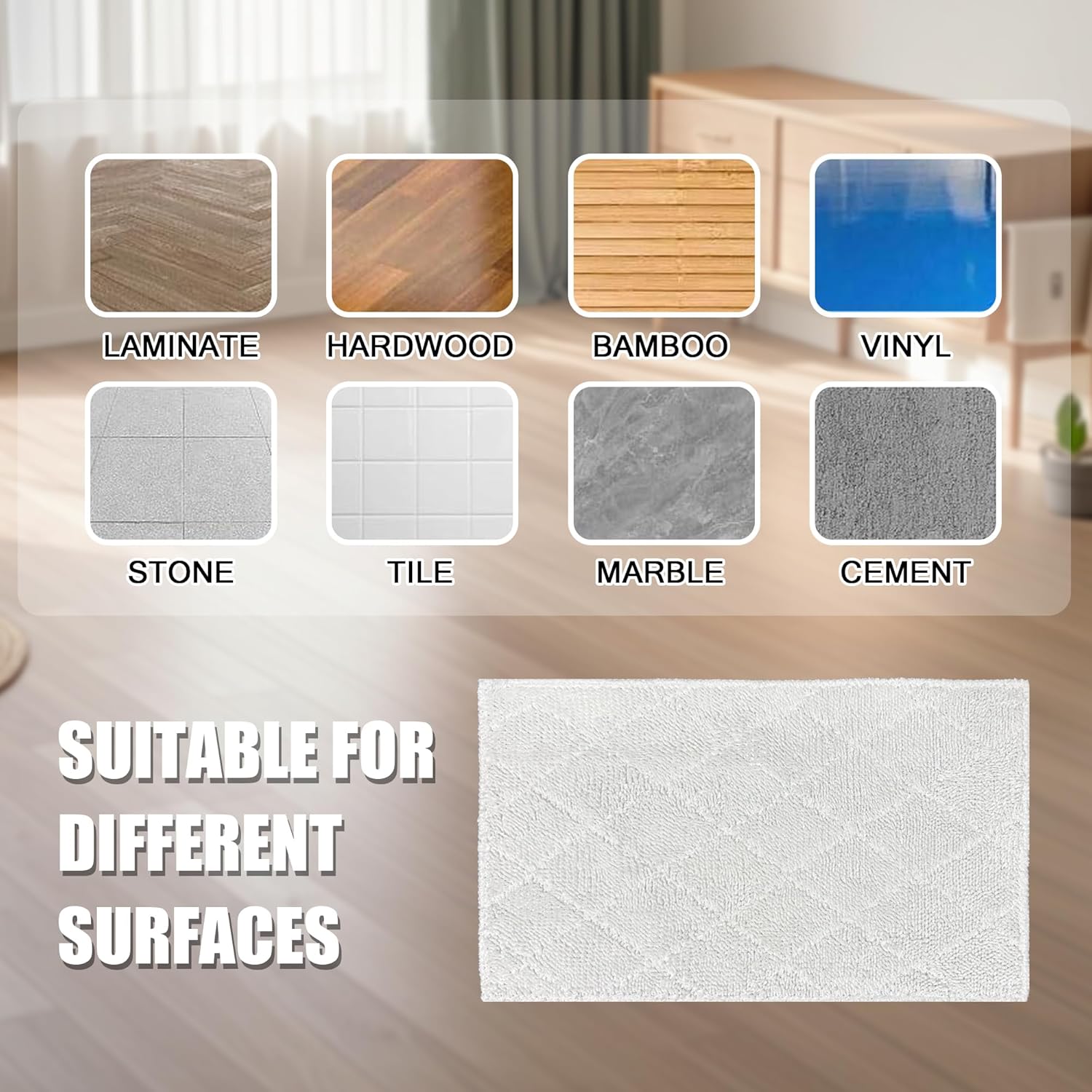 - 【Effective Cleaning】The mop pad material has good water absorption and the product is easy to install. It can be used to clean wooden floors, tile surfaces, marble slabs, etc. The mop pad will remove dust, wipe off stains, take away dander, hair and other dirt, making the cleaning work more efficient!