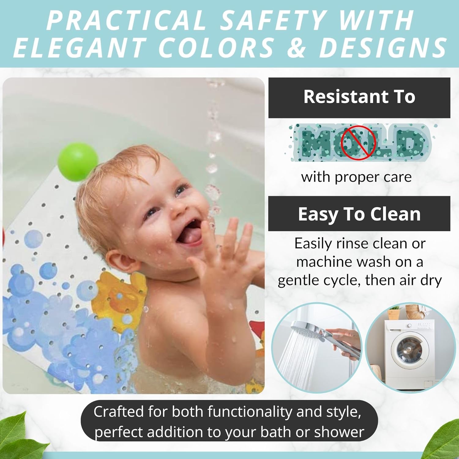 - NON-SLIP Boasting strong grip suction cups, this long bath mat firmly adheres to the bathtub floor, creating a stable and anti-slip environment to keep yourself and your little ones safe during bath time, ensuring a delightful and secure bath time experience for your little one.