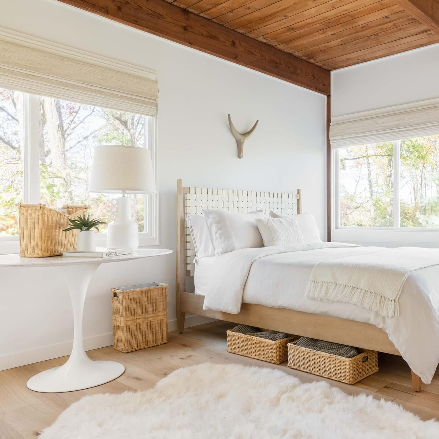 - Hand-woven from natural rattan, choose from 3 sizes of these low baskets to store linens under the bed, shoes in a closet, or boxes in the pantry.