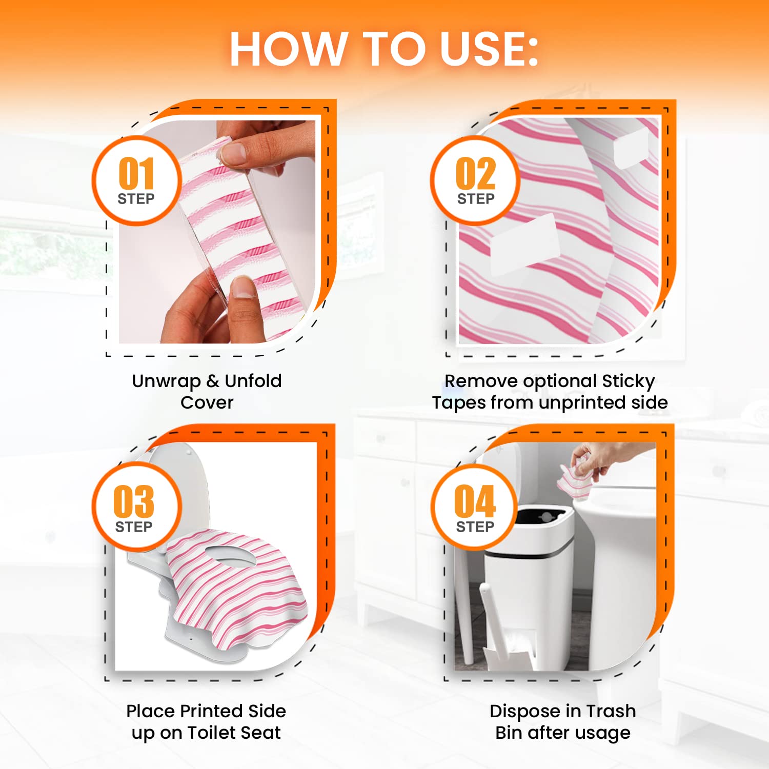 - INDIVIDUALLY WRAPPED FOR TRAVEL: This Pack of 20 disposable toilet seat covers for travel Potty features convenient single-liner packaging for on the go potty for toddler training in public restroom, Bathroom & Camping