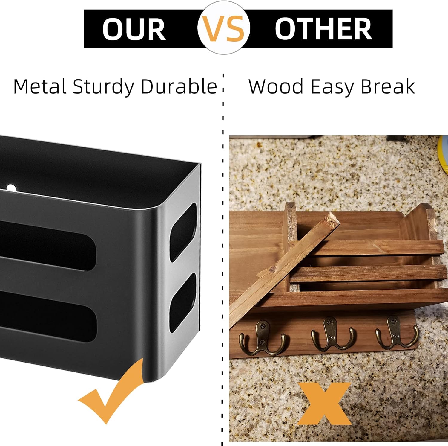 - 【Modern and Stylish Mail Organizer】: This key holder for wall with mail organizer can hold a variety of keys and envelopes, many pendants and postcards. It is neatly stored above the shoe cabinet, so you don't have to rush to find the key when you go out, you could easily take the key and go out, saving time. The key holder for wall is made from stainless steel, matt black surface, stylishly decorate your entrance wall. Perfect fit for your farmhouse decor and a real eye-catcher in your home.