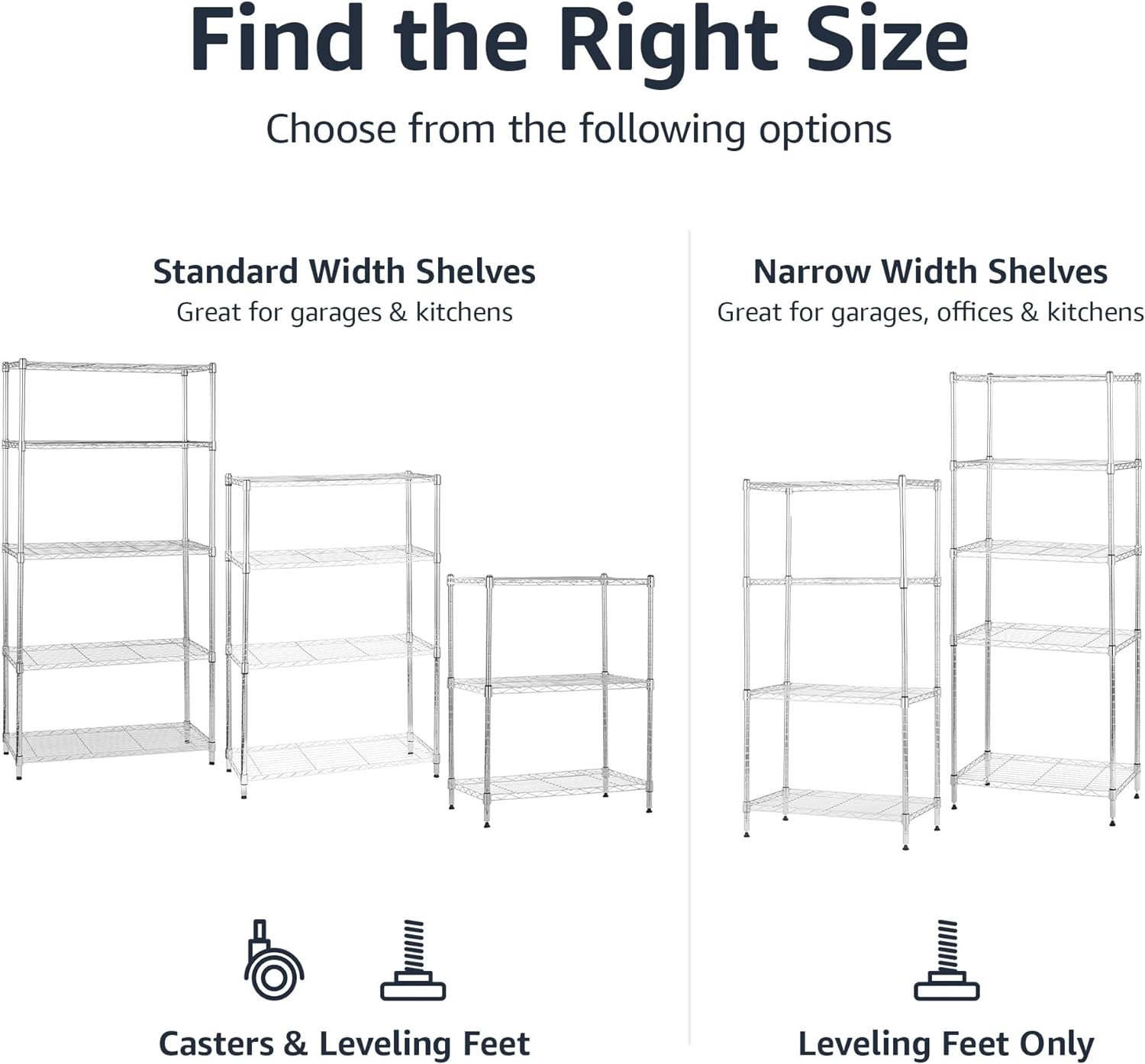 Amazon Basics 4-Shelf Adjustable, Storage Shelving Unit, (200 Pound Loading Capacity per Shelf), Steel Organizer Wire Rack, 13.4"D x 23.2"W x 48"H, Chrome