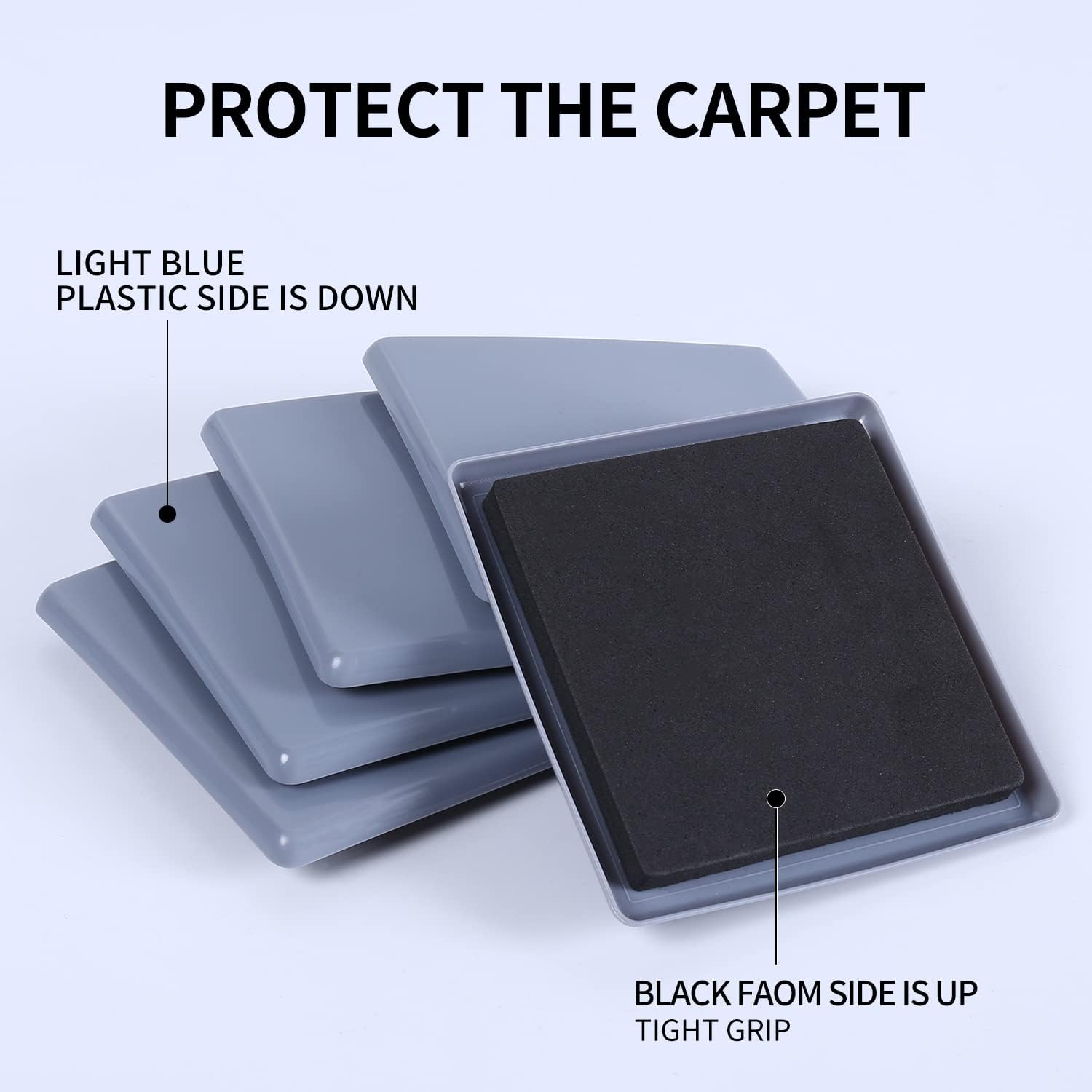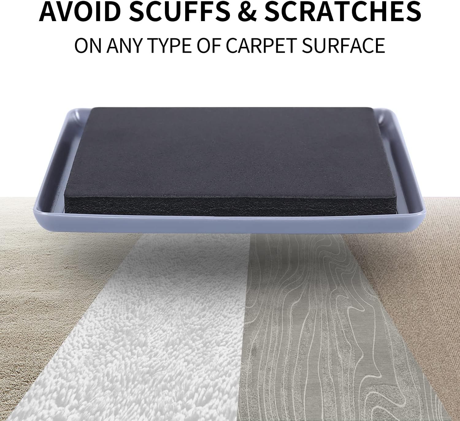 - ☛【Premium & Reusable】- Made of heavy-duty plastic and durable EVA foam, these 5" carpet sliders won’t rip or break. They grip securely under furniture for easy moving and can be reused.