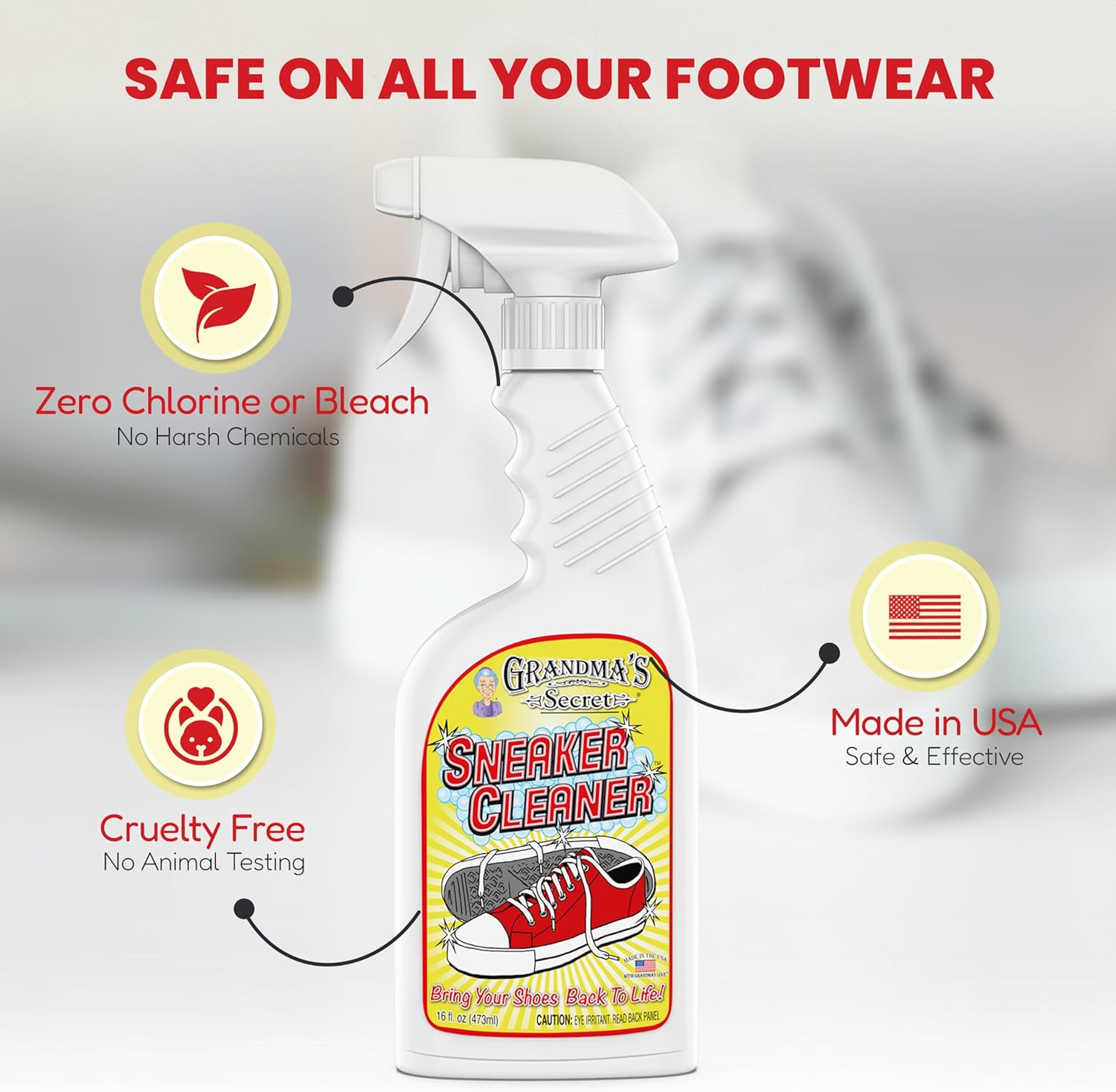 Grandma's Secret Sneaker Cleaner - Shoe Cleaner for Rubber, Canvas and Leather - Stain Remover Spray Removes Dirt, Grime and Grass - Sneakers Cleaner for Outdoor Shoes, Slippers and Moccasins – 16 oz
