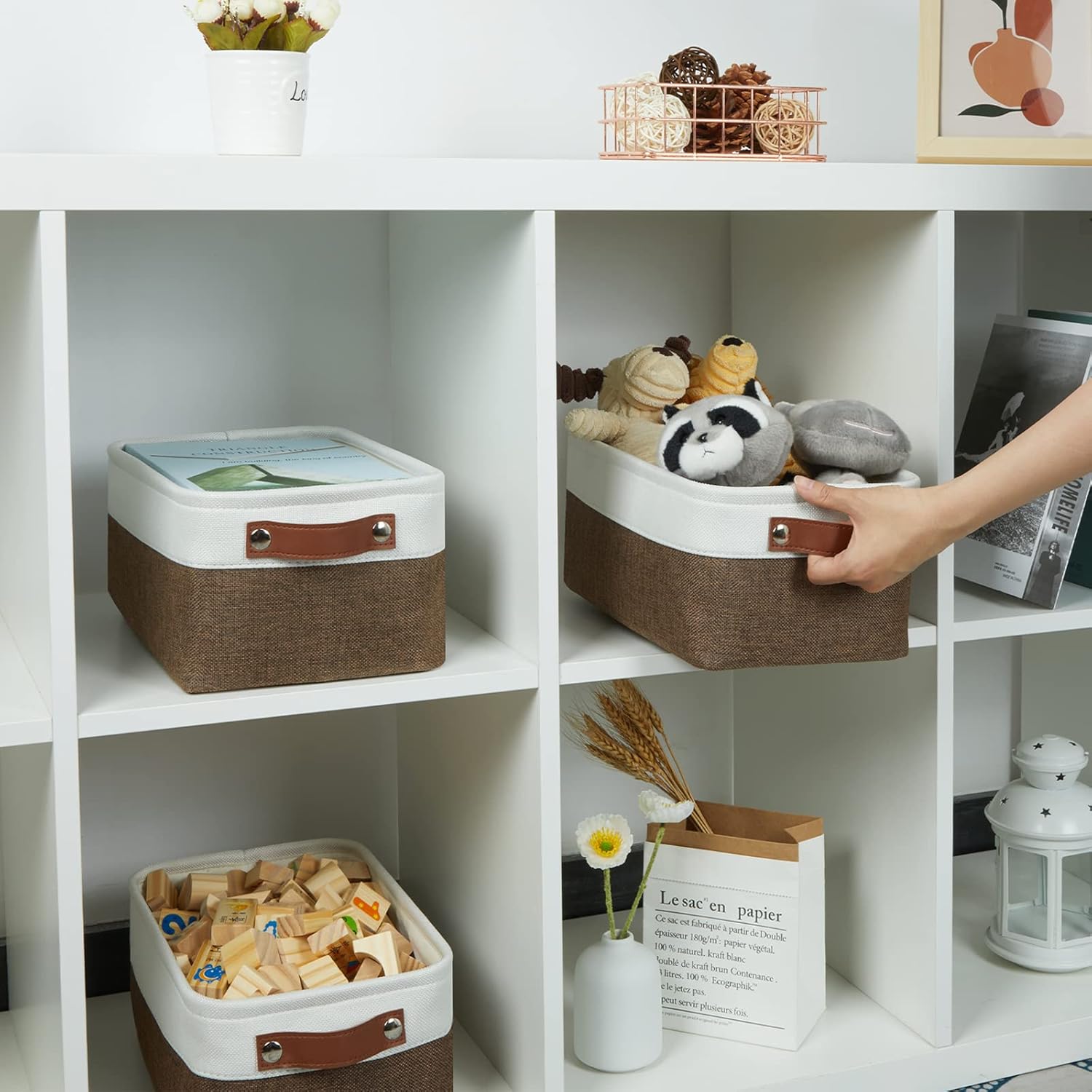 - 【HNZIGE Exclusive Fabric Basket Set】Set includes 6 small baskets(11.8" x 7.8" x 5.1"). There are leather handles on both sides, perfect for use as brown decorative storage baskets. These shelf storage basket for shelves are a new and exclusive design for keeping clothes and household items in the order