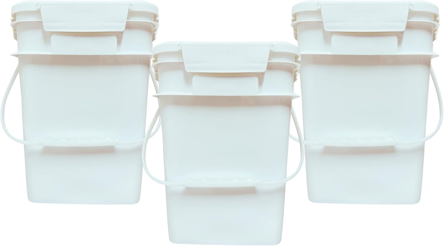 House Naturals 4 Gallon Square Food Grade Bucket Pail with Plastic Handles and Lid (Pack of 3) Made in USA containers (White)