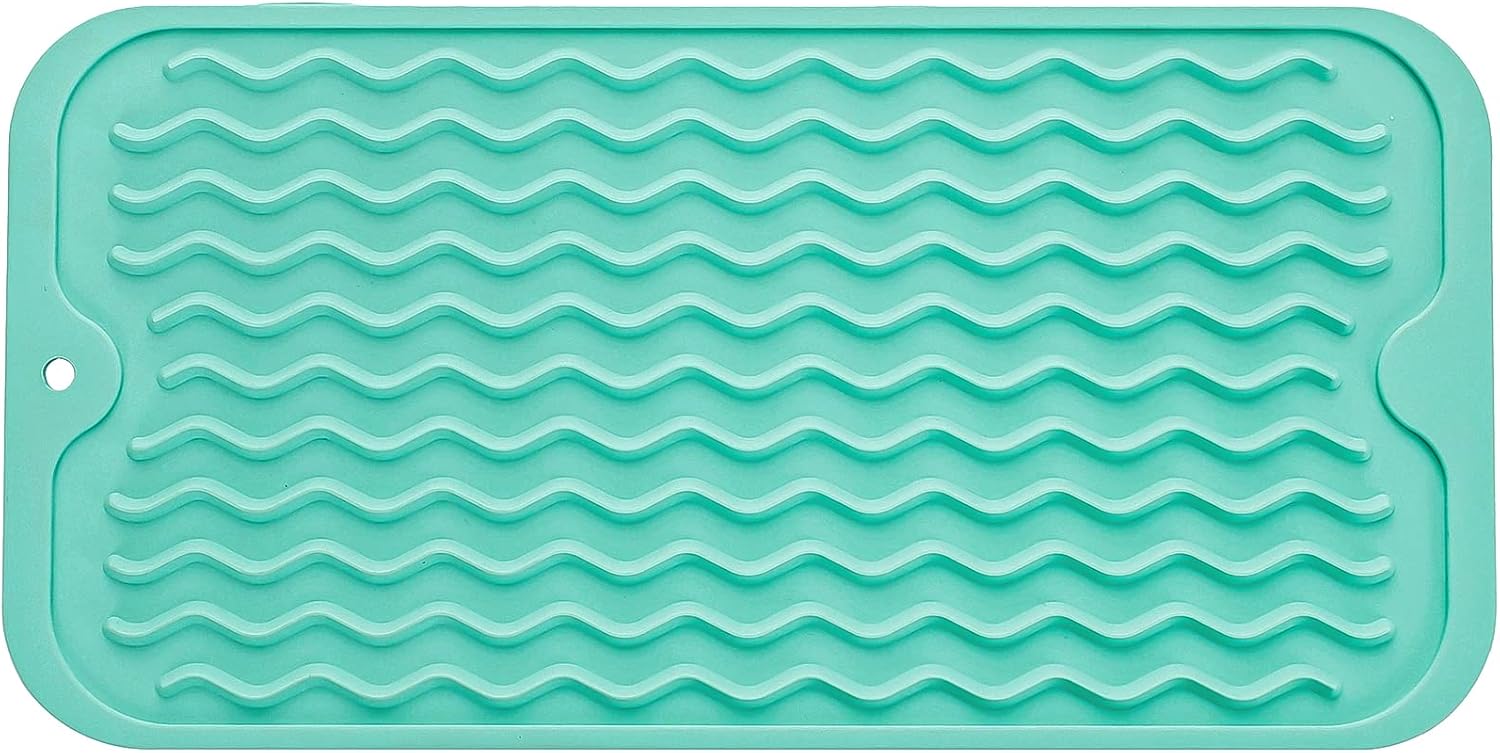 Silicone Dish Drying Mat for Multiple Usage,Easy clean,Eco-friendly,Heat-resistant Silicone Mat for Kitchen Counter or Sink,Refrigerator or Drawer Liner Mint S 12 inches x 6 inches