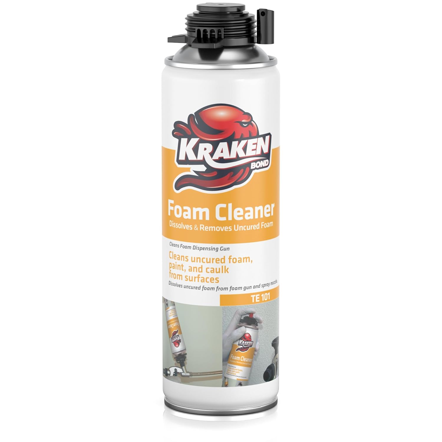 - Highly Effective Cleaning Power: Kraken Bond spray foam gun cleaner targets and eradicates uncured polyurethane foam with ease, ensuring surfaces and tools, including foam gun applicators, are free from residue, enhancing their performance and longevity.