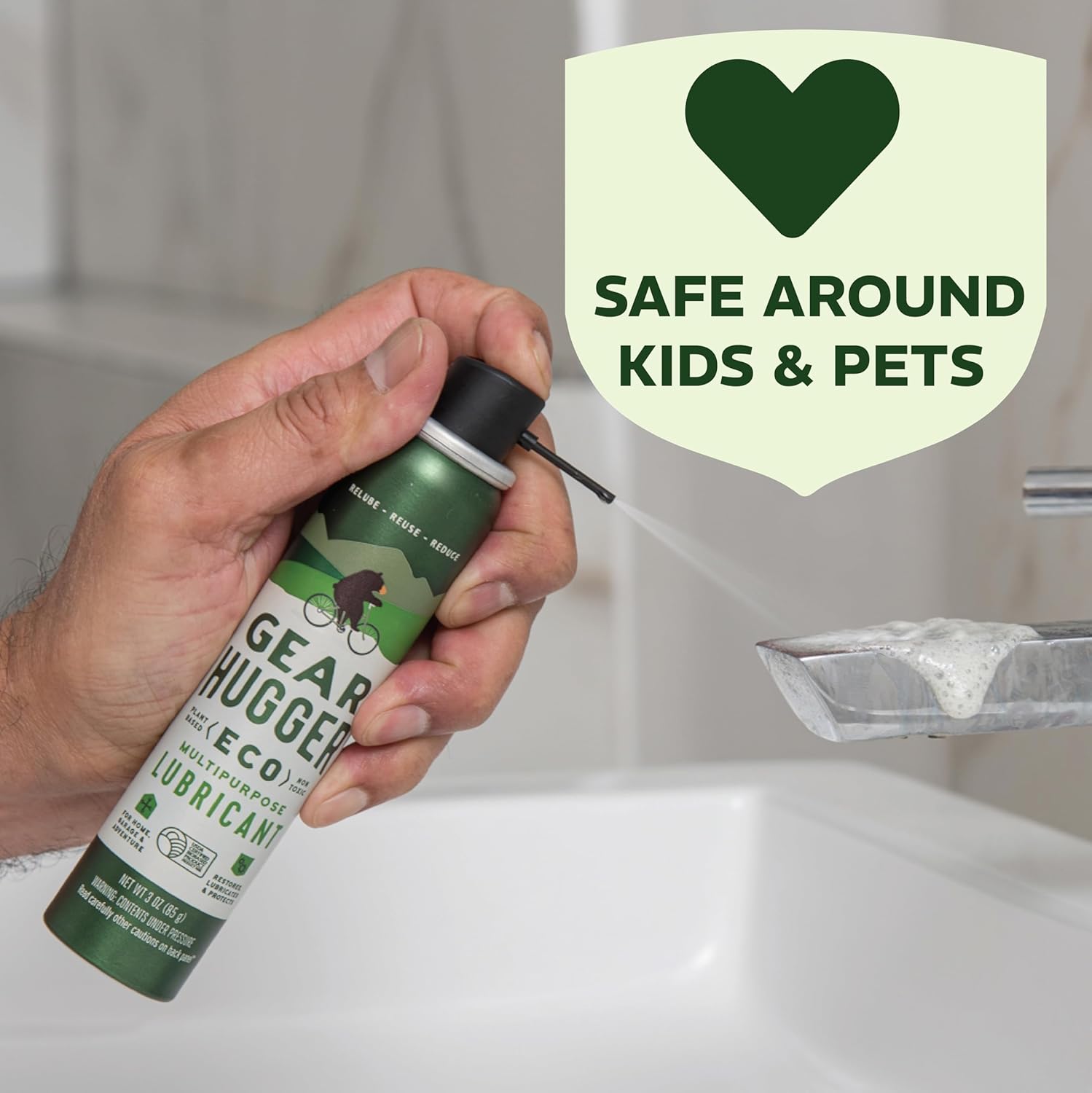 - 1001 USES & COUNTING - Gear Hugger is a perfect small lubricant spray to take on the go for bike lubrication, bike grease, and for any mechanical mishaps on your outdoor excursions! The possibilities are limitless for this eco friendly lubricant. Quiet squeaky doors, drawers, and rusty hinges. Help lubricate plumbing joints, bike chains, and camping gear! Whether you’re looking for a bike grease, a brake grease, a treadmill lubricant for belt, or a rust remover for metal, we’ve got you covered.
