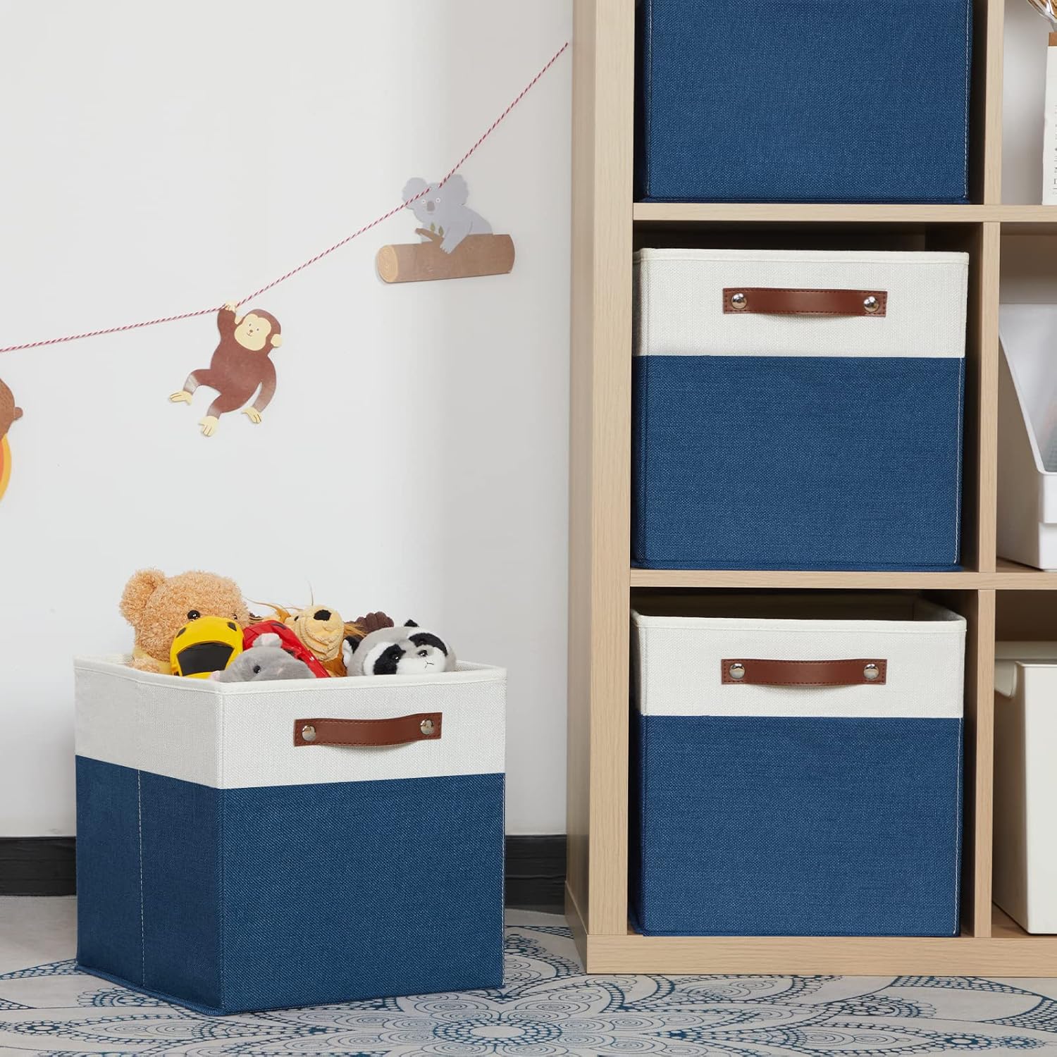 - 【Sturdy Leather Handles 】Sturdy thickened leather handles and metal iron buckles make cube storage basket easy to carry even with a heavy load. Cardboard is inserted at the bottom and sides to provide support, so that these decorative storage baskets to stand on, holding the shape well and can be used for a long time